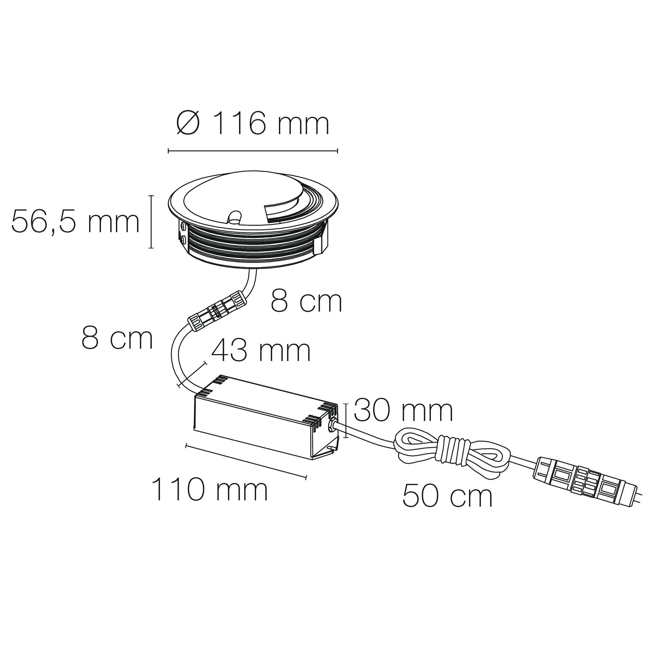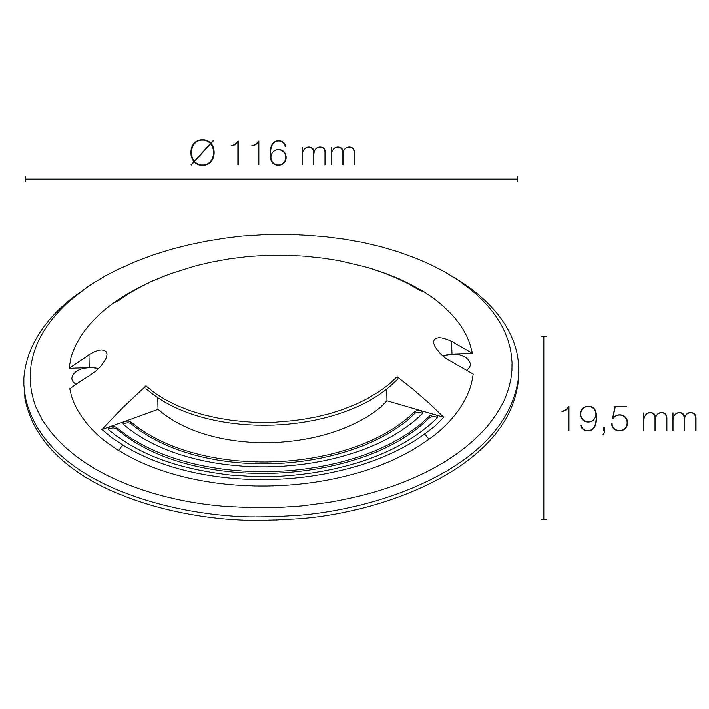 Encastré de sol EUROPOLE ZEPH 2 SLIM - 230 déflecteur simple anthracite, collerette percée, blanc 4000K, IRC>80, 3x2W, verre transparent/nid d'abeille basse luminance, 230VAC. Classe de protection I, IP67, IK08, câblé de 0,5m avec connectiques rapides IP68 Plug & Play mâle et femelle, HO5RN-F 3x1mm². Durée de vie : 30000h. Dimmable : Non. Dimension collerette : diamètre 116mm. Diamètre d'encastrement : 100mm. Matériau : corps en aluminium/collerette et visserie inox 316L. Traitement de la surface : traitement de la collerette par passivation, corps traité anticorrosion. Résistance environnement : peinture résistante aux brouillards salins 1000h. Températures de fonctionnement : -20°C/+40°C. Walkover : Oui. Driveover : Non. Submersible : Non. Installation uniquement en encastré dans terrasse ventilée. Alimentation déportée incluse.