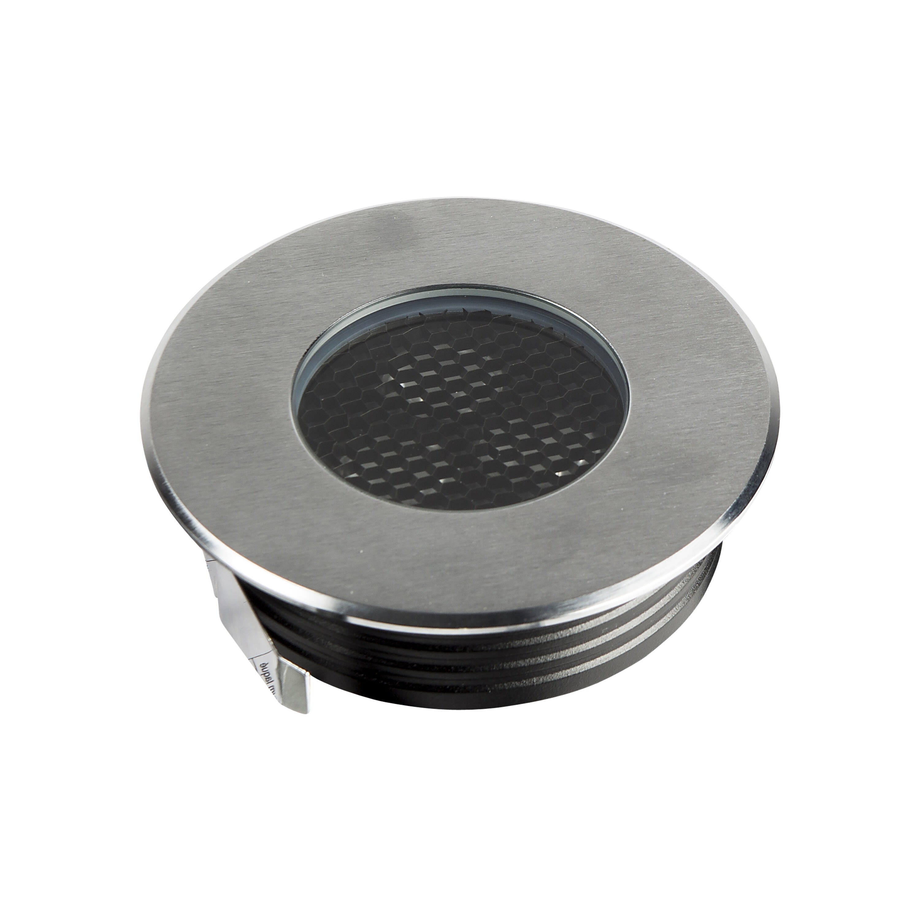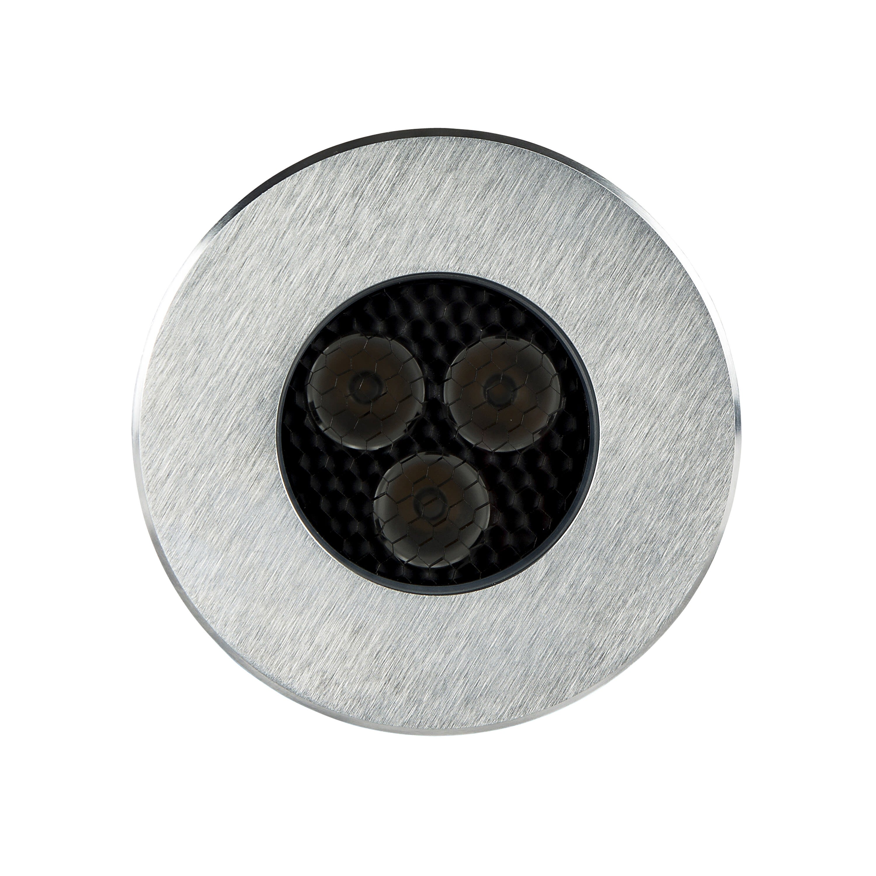 Encastré de sol ZEPH 2 SLIM - 230 rond : 116mm, inox, collerette non percée, blanc 4000K, IRC>80, 3x2W, 368lm (61lm/W), verre transparent/nid d'abeille basse luminance, 10° (éclairage), 230VAC. Classe I, IP67. IK08. Non dimmable