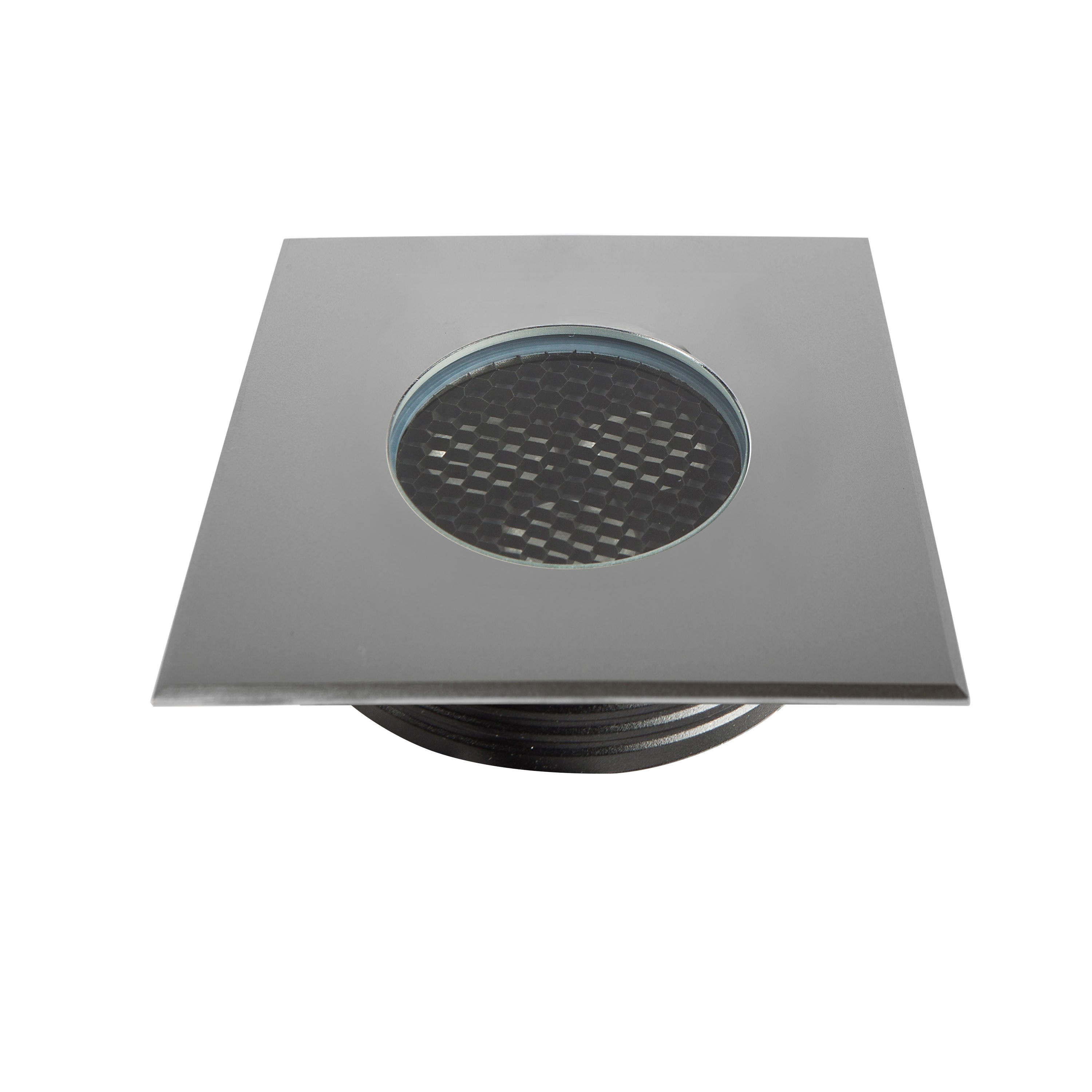 Encastré de sol ZEPH 2 SLIM - 24 carré : 116x116mm, inox, collerette non percée, RGBW 6500K3x2W, verre transparent/nid d'abeille basse luminance, 30° (éclairage), 24VDC. Classe III, IP67. IK08. Dimmable.