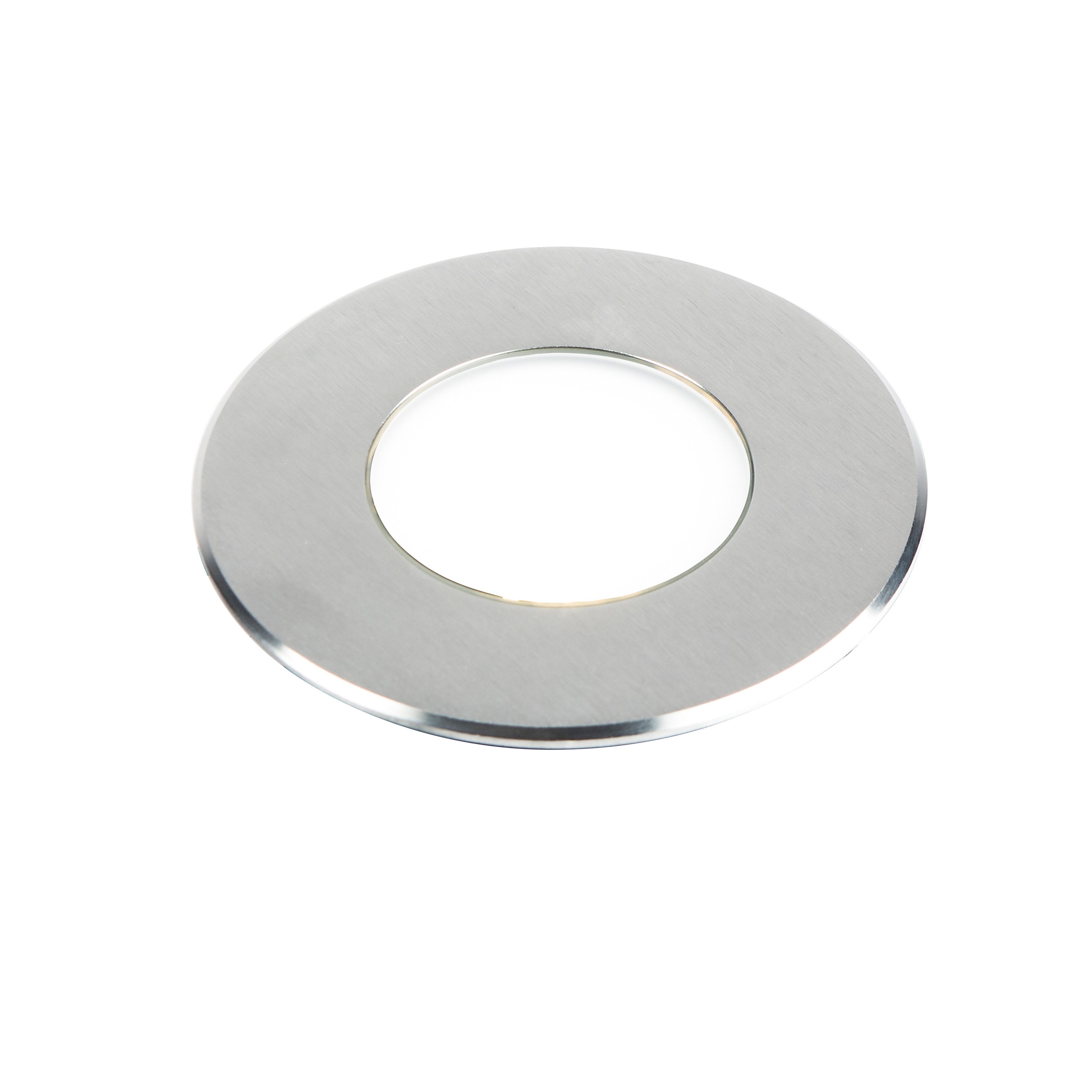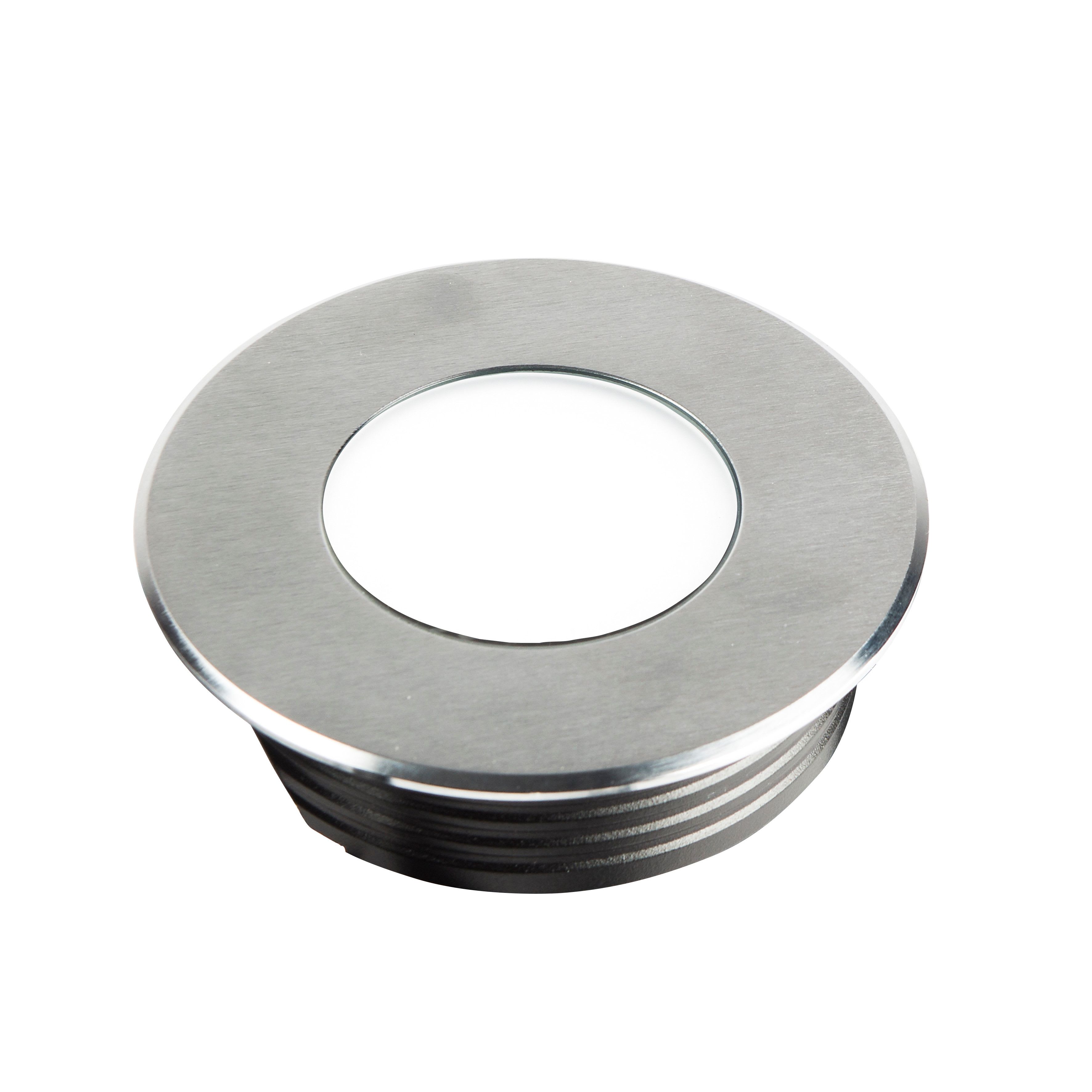 Encastré de sol ZEPH 2 SLIM - 24 rond : 116mm, inox, collerette non percée, blanc 4000K, IRC>80, 3x2W, 322lm (54lm/W), verre opale, 120° (balisage), 24VDC. Classe III, IP67. IK08. Dimmable.
