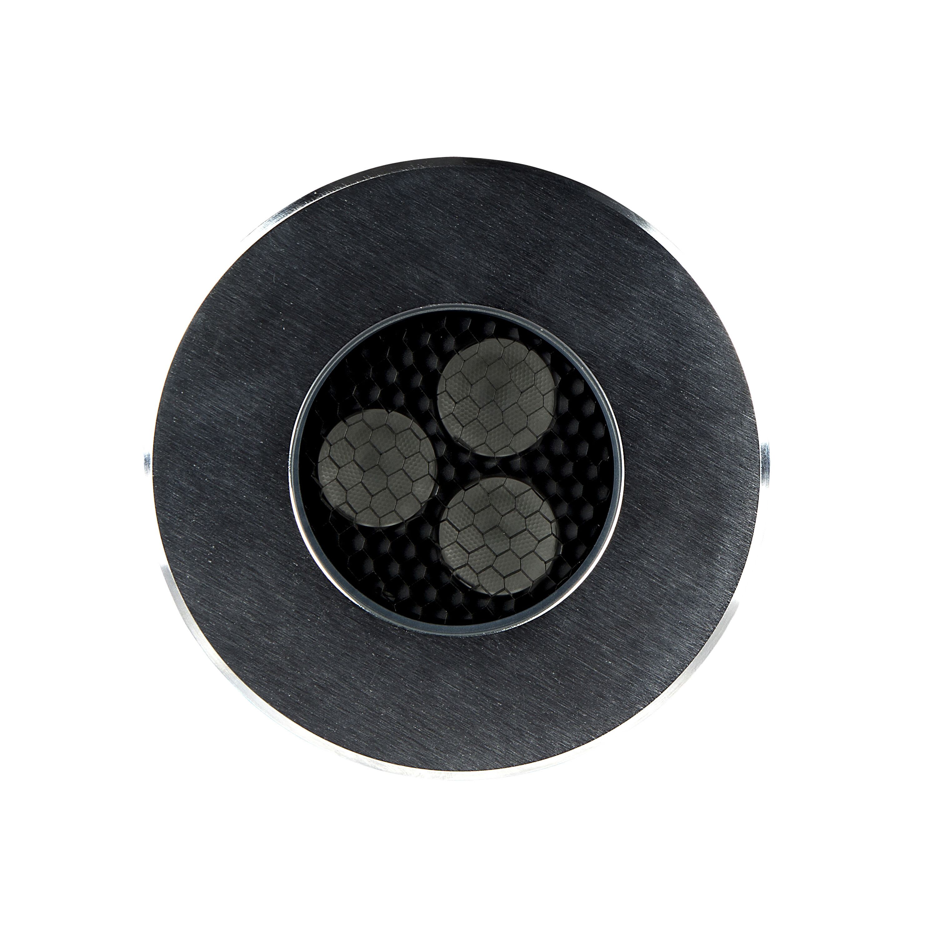 Encastré de sol ZEPH 2 SLIM - 24 rond : 116mm, inox, collerette non percée, RGBW 6500K3x2W, verre transparent/nid d'abeille basse luminance, 30° (éclairage), 24VDC. Classe III, IP67. IK08. Dimmable.