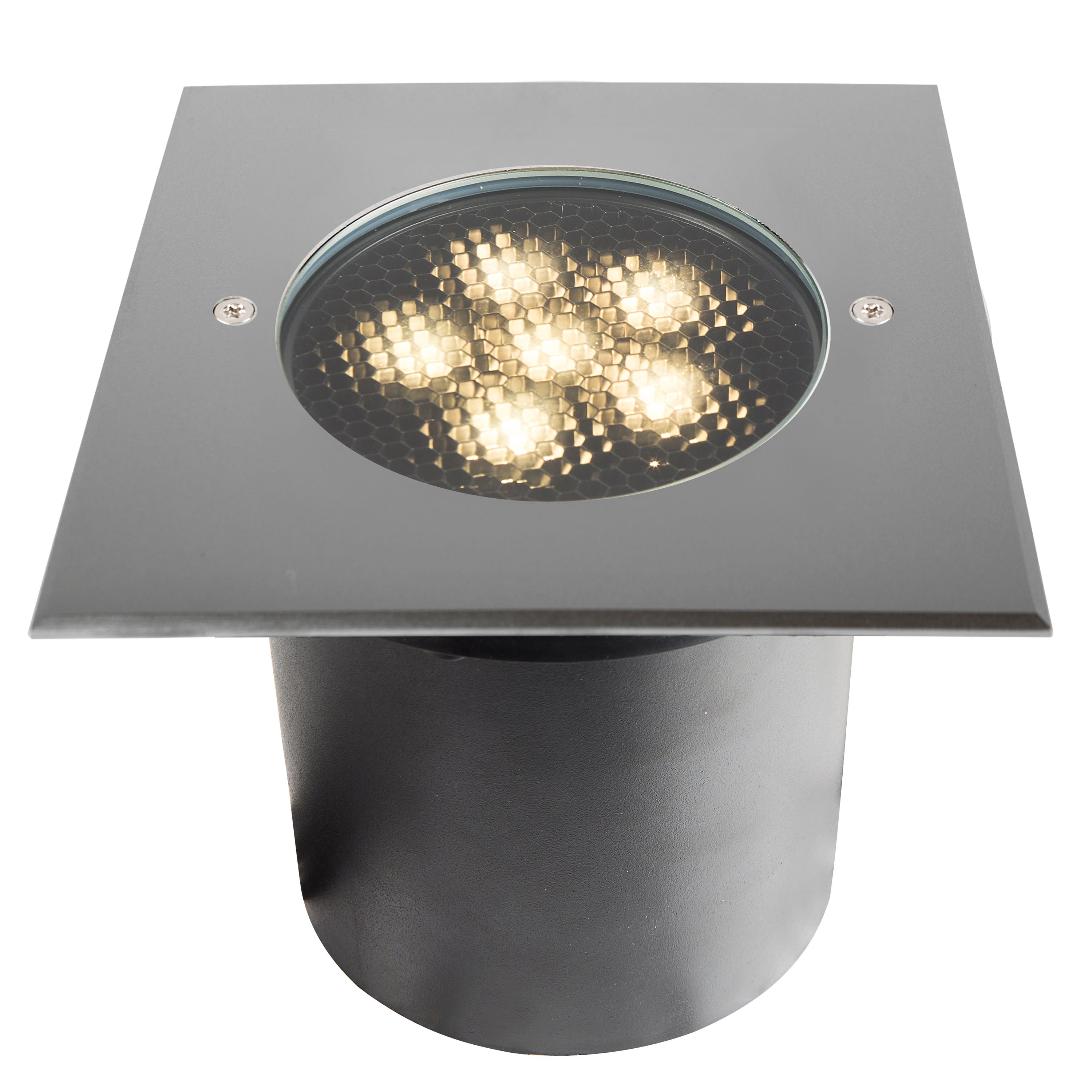 Encastré de sol ZEPH 3 - 24 carré : 173x173mm, inox, blanc 3000K, IRC>80, 6x2W, 925lm (77lm/W), verre transparent, 0/50° (éclairage), 24VDC. Classe III, IP67. IK08. Dimmable.