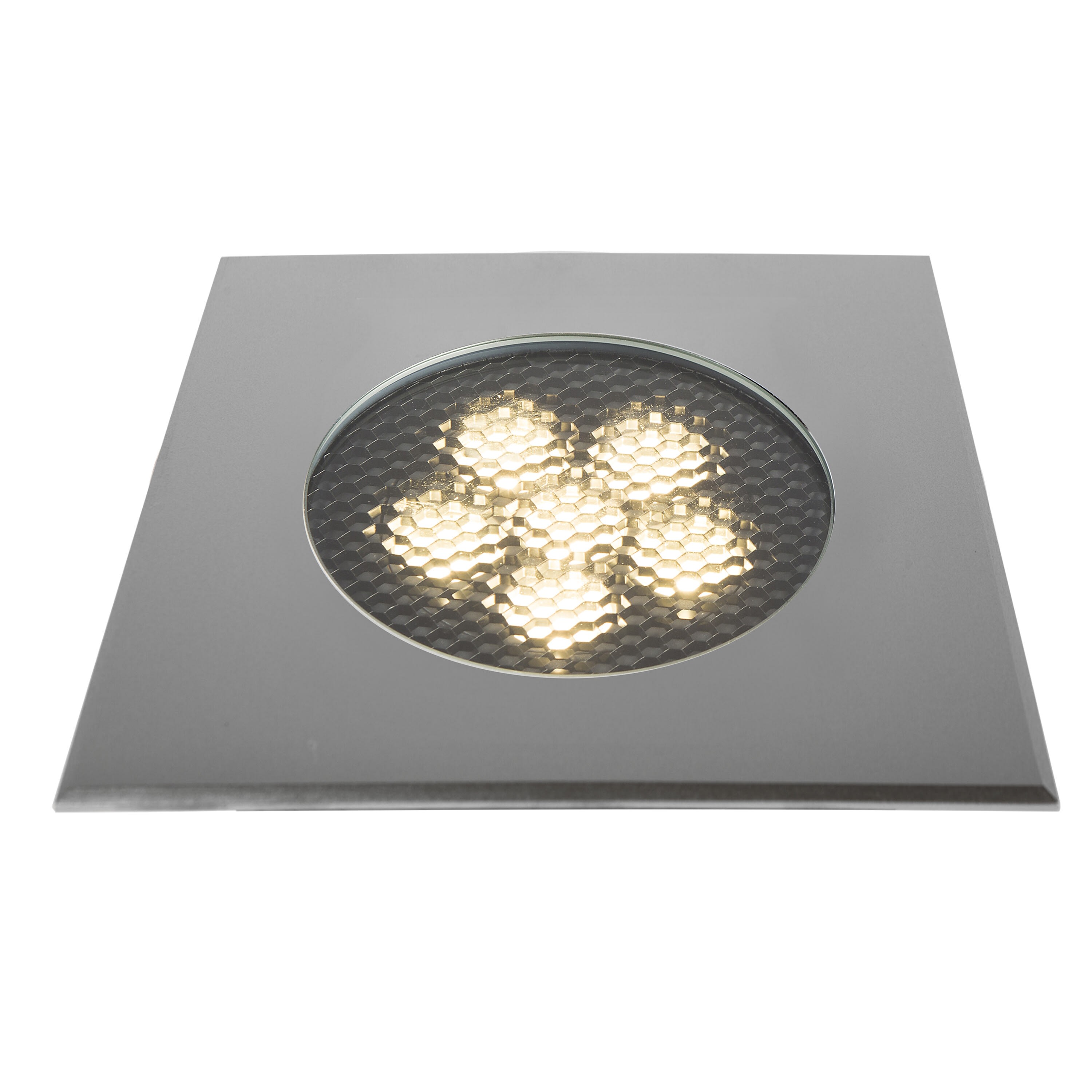 Encastré de sol EUROPOLE ZEPH 3 SLIM - 230 carré inox, collerette non percée, blanc 3000K, IRC>80, 6x2W, 740lm (62lm/W), verre transparent/nid d'abeille basse luminance, angle 10° (éclairage), 230VAC. Classe de protection I, IP67, IK08, câblé de 0,5m avec connectiques rapides IP68 Plug & Play mâle et femelle, HO5RN-F 3x1mm². Durée de vie : 30000h. Dimmable : Non. Dimension collerette : 173x173mm. Diamètre d'encastrement : 155mm. Matériau : corps en aluminium/collerette et visserie inox 316L. Traitement de la surface : traitement de la collerette par passivation, corps traité anticorrosion. Résistance environnement : garantie corrosion 15 ans. Températures de fonctionnement : -20°C/+40°C. Walkover : Oui. Driveover : Non. Submersible : Non. Installation uniquement en encastré dans terrasse ventilée. Alimentation déportée incluse.