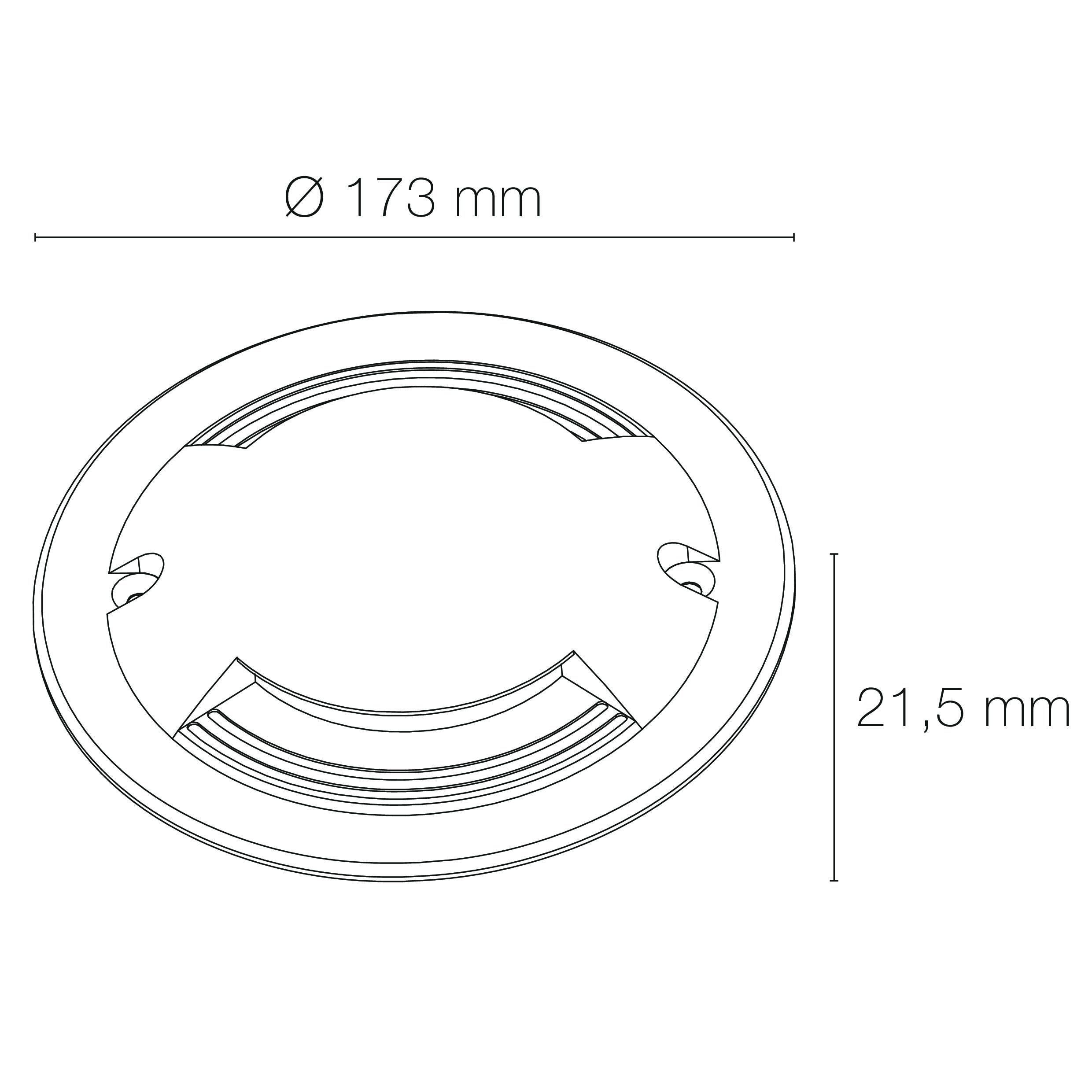 Encastré de sol EUROPOLE ZEPH 3 SLIM - 24 déflecteur double anthracite, collerette percée, blanc 4000K, IRC>80, 6x2W, verre transparent/nid d'abeille basse luminance, 24VDC. Classe de protection III, IP67, IK08, câblé de 0,5m avec connectiques rapides IP68 Plug & Play mâle et femelle, HO5RN-F 2x1mm². Durée de vie : 30000h. Dimmable : Oui, variation avec alimentation/contrôleur compatible (non inclus). Dimension collerette : diamètre 173mm. Diamètre d'encastrement : 155mm. Matériau : corps en aluminium/collerette et visserie inox 316L. Traitement de la surface : traitement de la collerette par passivation, corps traité anticorrosion. Résistance environnement : peinture résistante aux brouillards salins 1000h. Températures de fonctionnement : -20°C/+40°C. Walkover : Oui. Driveover : Non. Submersible : Non. Installation uniquement en encastré dans terrasse ventilée.