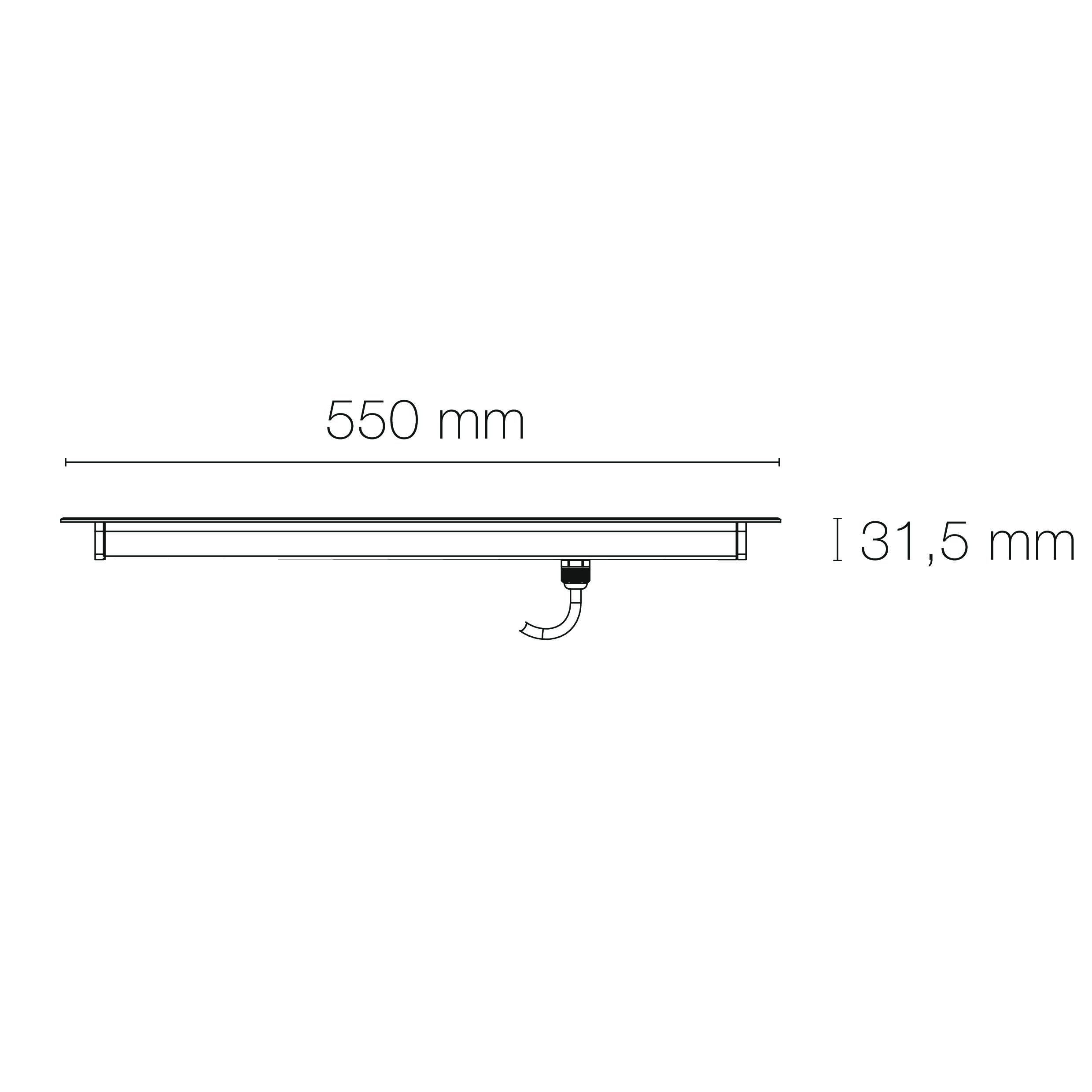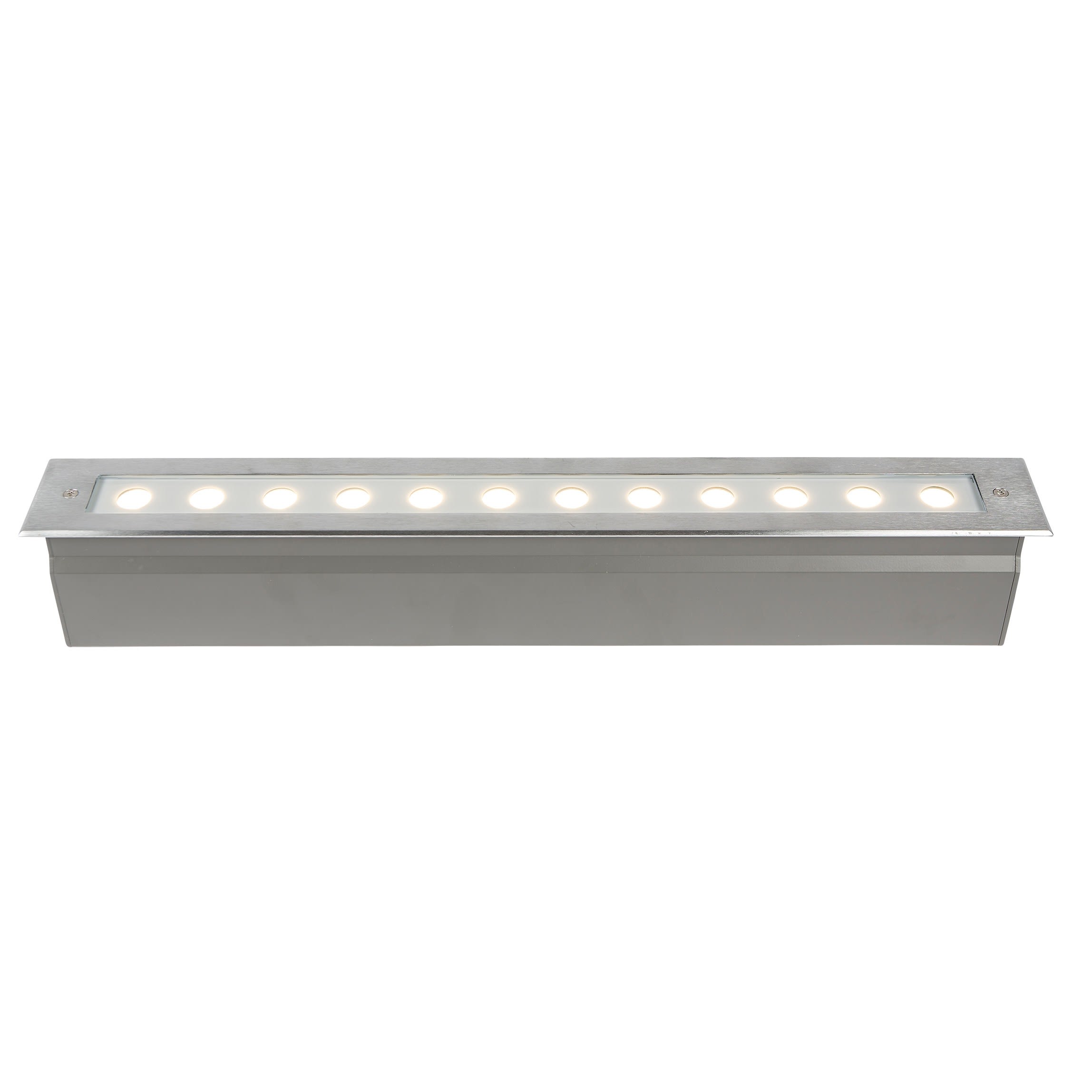 Encastré de sol ZEPH 5.1 - 24 rectangle : 550x68mm, inox, blanc 4000K, IRC84, 12x1,5W, 1931lm (107lm/W), verre transparent, 30° (éclairage), 24VDC. Classe III, IP67. IK07. Dimmable.