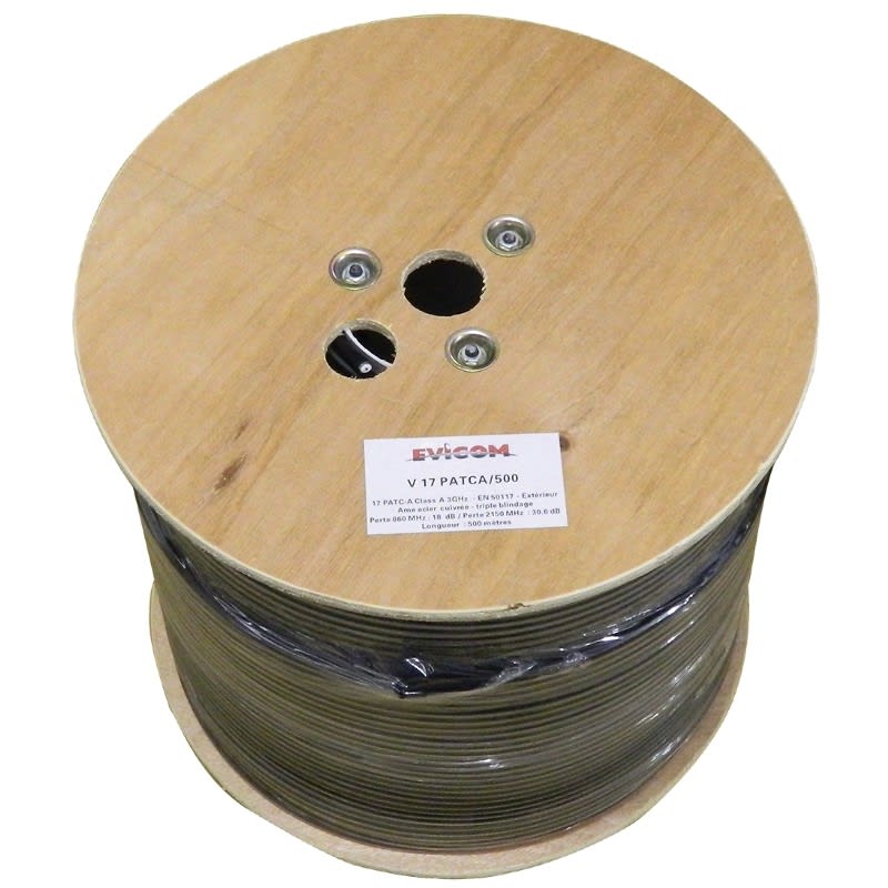 Lien indispensable entre les composants d’un système de réception TV, le câble COAXIAL est aujourd’hui le meilleur support pour la distribution des signaux de télévision terrestre et satellite.La gamme COAXPRO dispose des câbles de raccordement, de transfert et des multi-coax.Les câbles de RACCORDEMENT V17 sont disponibles en PVC blanc (utilisation intérieure) ou en P.E. noir pour une utilisation extérieure. Ils sont utilisés pour le raccordement des éléments du système de télévision terrestre et satellite. De classe A, ils sont conditionnés en 100, 250 ou 500 mètres.Les câbles de TRANSFERT V11 sont disponibles en PVC blanc (utilisation intérieure) ou en P.E. noir pour une utilisation extérieure. Ils sont utilisés pour les liaisons longues distances entre bâtiments ou colonnes. De classe A, ils sont conditionnés en 100, 250 ou 500 mètres.Les câbles MULTI-COAX V MULTI5 (5 câbles) et V MULTI9 (9 câbles) sont dédiés au raccordement des commutateurs satellites. De classe A ils sont conditionnés en 50 et 100 mètres.