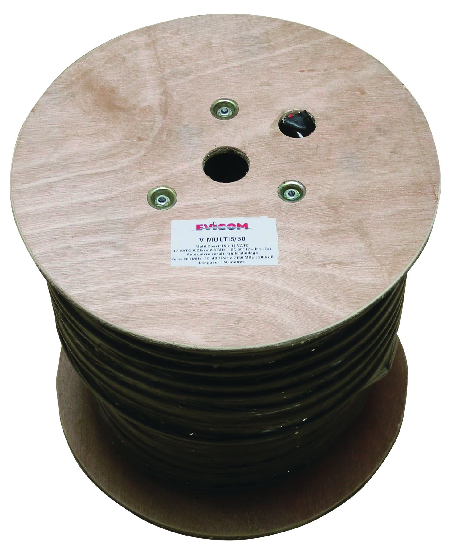 Evicom - Câble multi-coaxiaux - 5 câbles - Classe A en 50 m - VMULTI5A/50