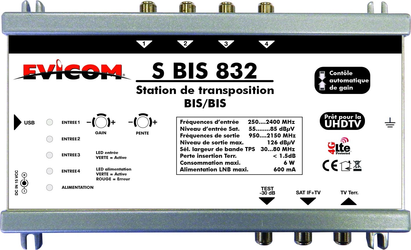 Evicom - Centrale de transposition BIS/BIS 32 canaux 4 entrées satellites - SBIS832