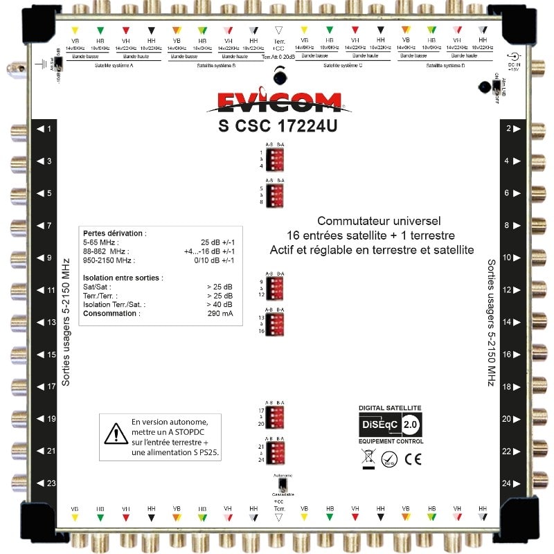 Evicom - Commutateur universel 17 câbles 16 sat. + terrestre, 24 sorties - SCSC17224U
