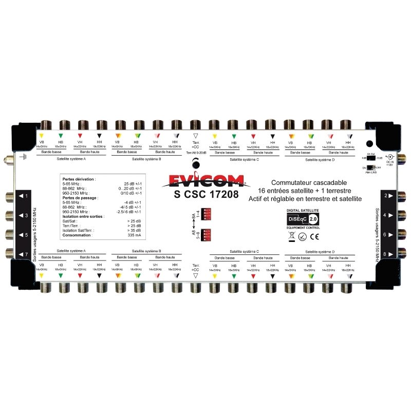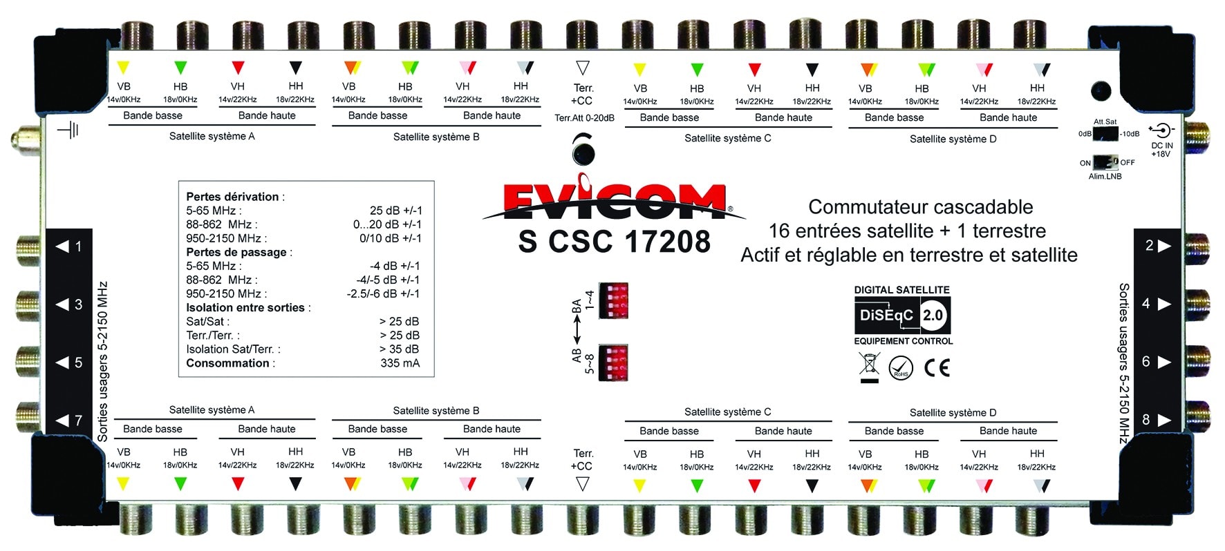 Evicom - Commutateur universel 17 câbles 16 sat. + terrestre, 8 sorties - SCSC17208