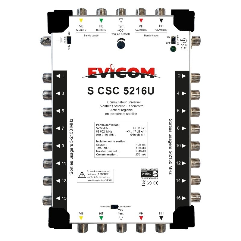 Evicom - Commutateur universel 5 câbles 4 sat. + terrestre, 16 sorties - SCSC5216U