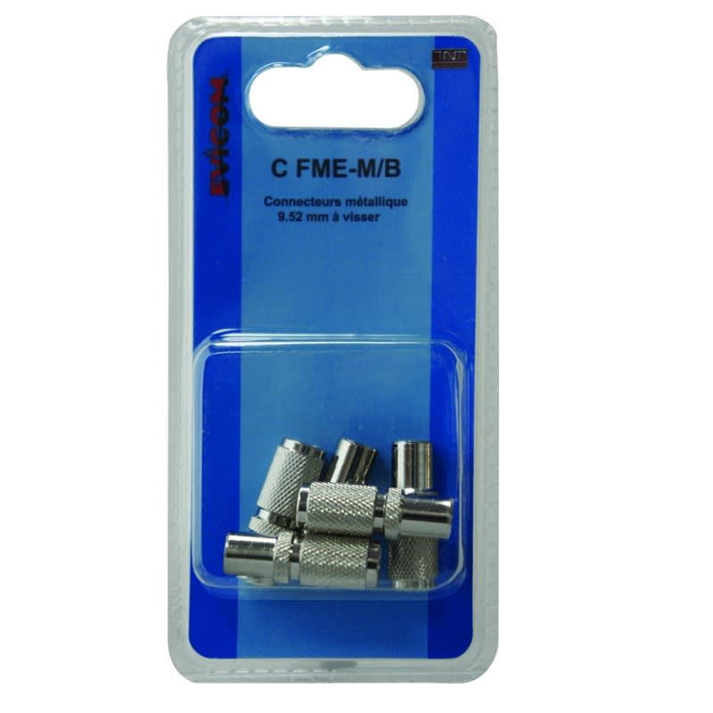 Blister contenant 5 fiches mâles métalliques C FME/M. • Pour câble 6.8 mm (type 17 VATC - 17 PATC).