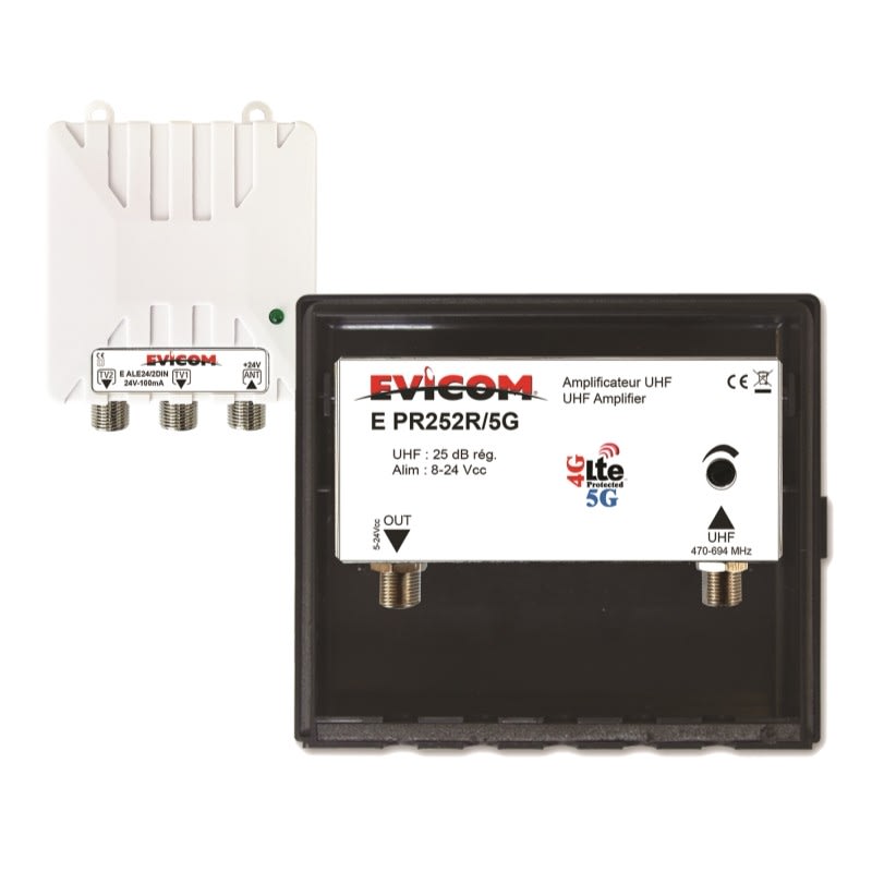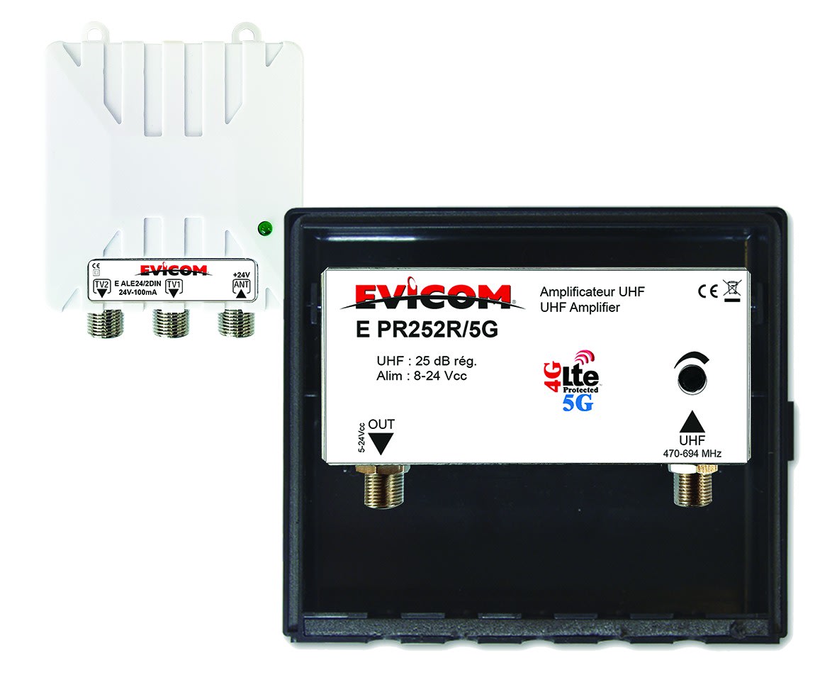 Evicom - Kit préamplificateur 25 dB + alimentation 24 Vcc 2 sorties - EKEV252R/5G