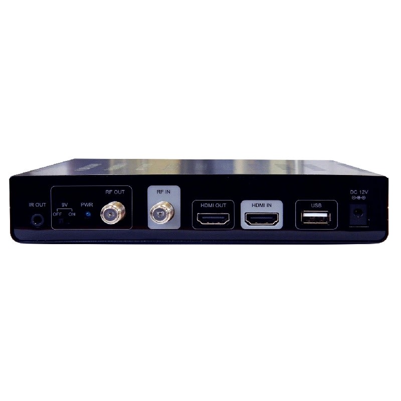 Modulateur HD COFDM VHF/UHF avec voie de retour IR • 1 entrée HDMI avec loop • Programmable électroniquement • MER : 30 dB • Niveau de sortie : 85 à 100 dBµV (15dB de réglage) • Alimentation 230 Volts
