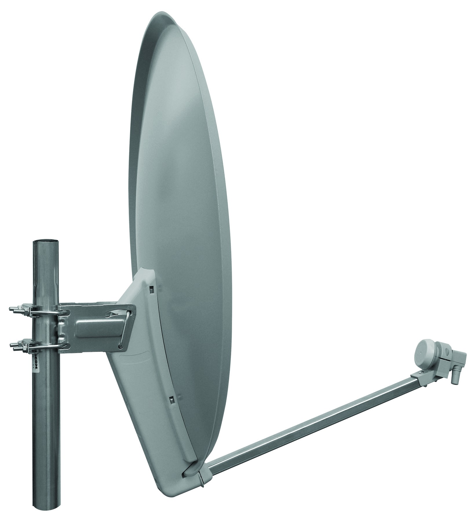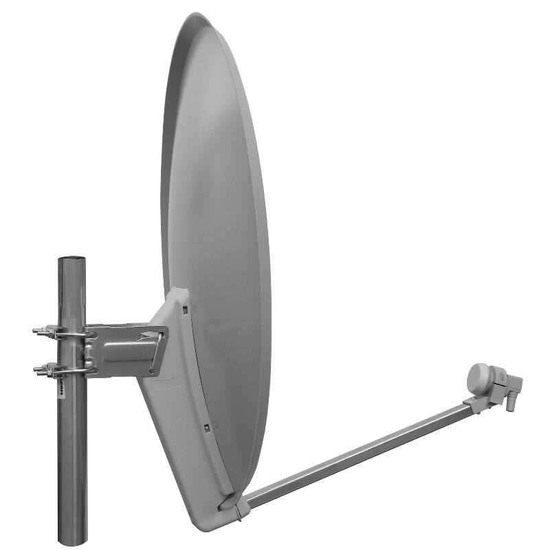 Parabole acier 80 cm grise • Gain : 38.5 dB • Ouverture : 2.9° • Fixation : se fixe sur mât de diamètre 30 à 60 mm