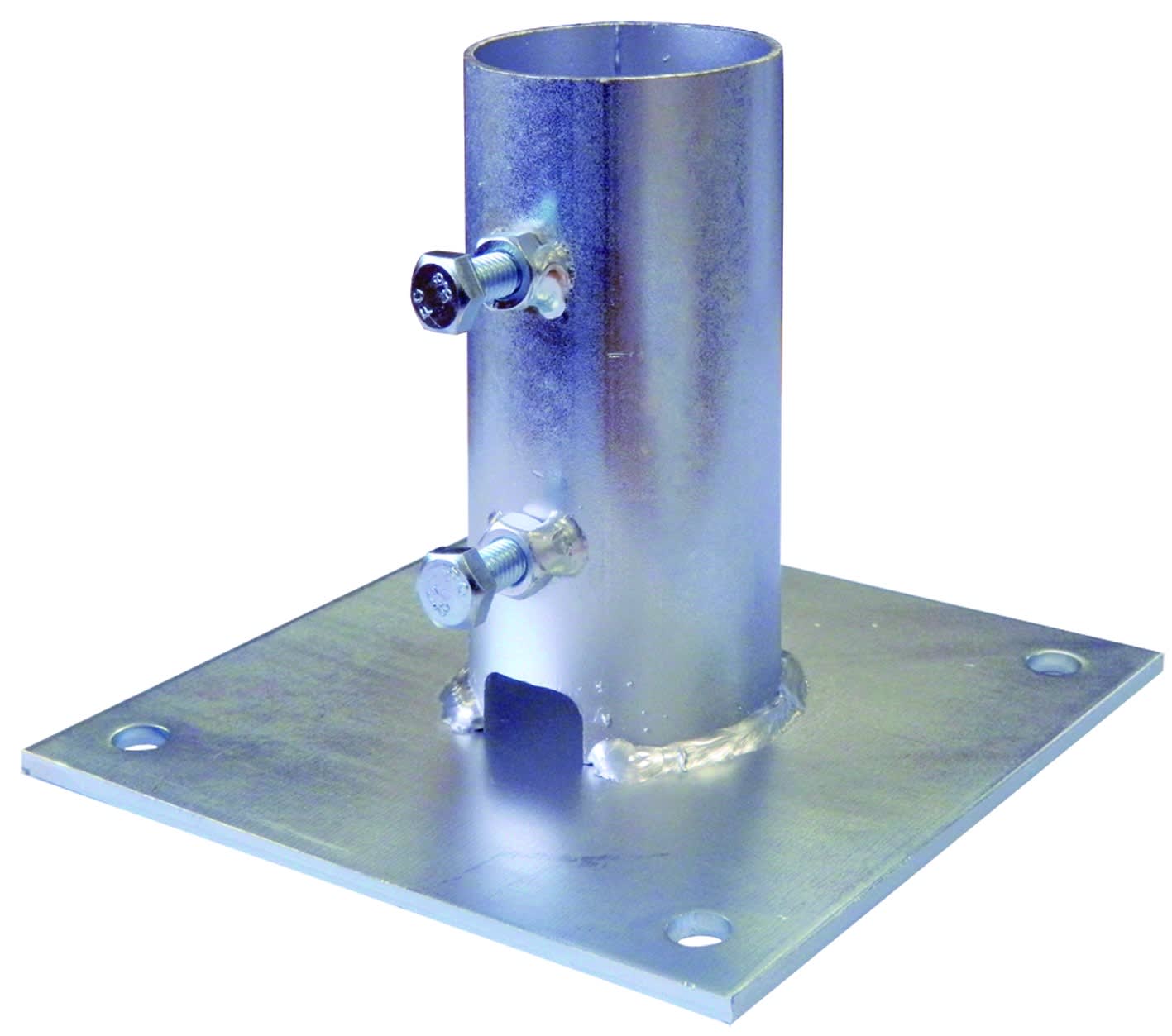 Plaque de base acier, pour grenier et terrasse • Pour mâts jusqu’à diamètre 50 mm • Entraxe 120 mm