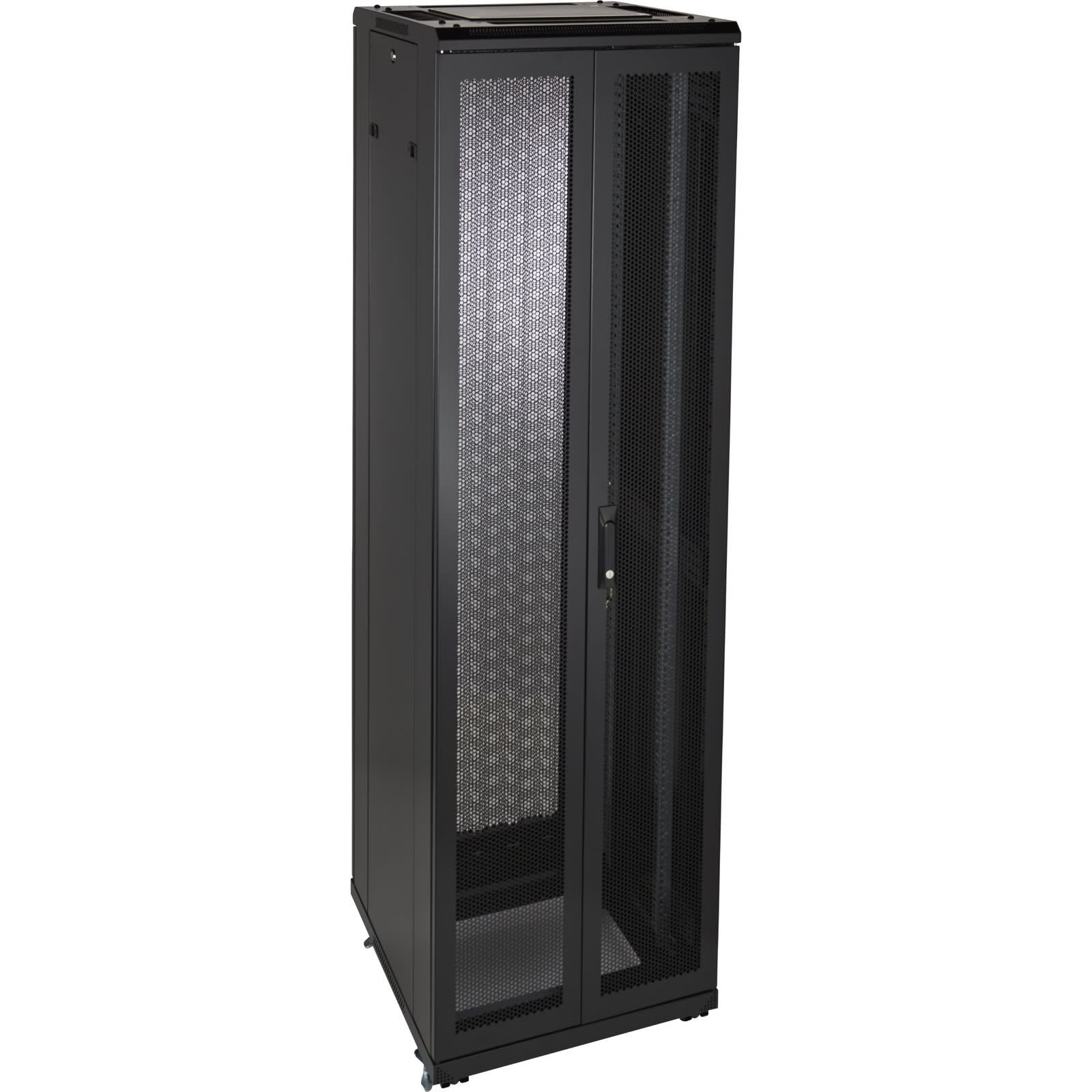 Environ ER600 Baie 42U 600x600 mm Porte Ondulé et Ventilé (A) Double Porte Ventilée (F), Deux Panneaux, Pas de Management, Noir