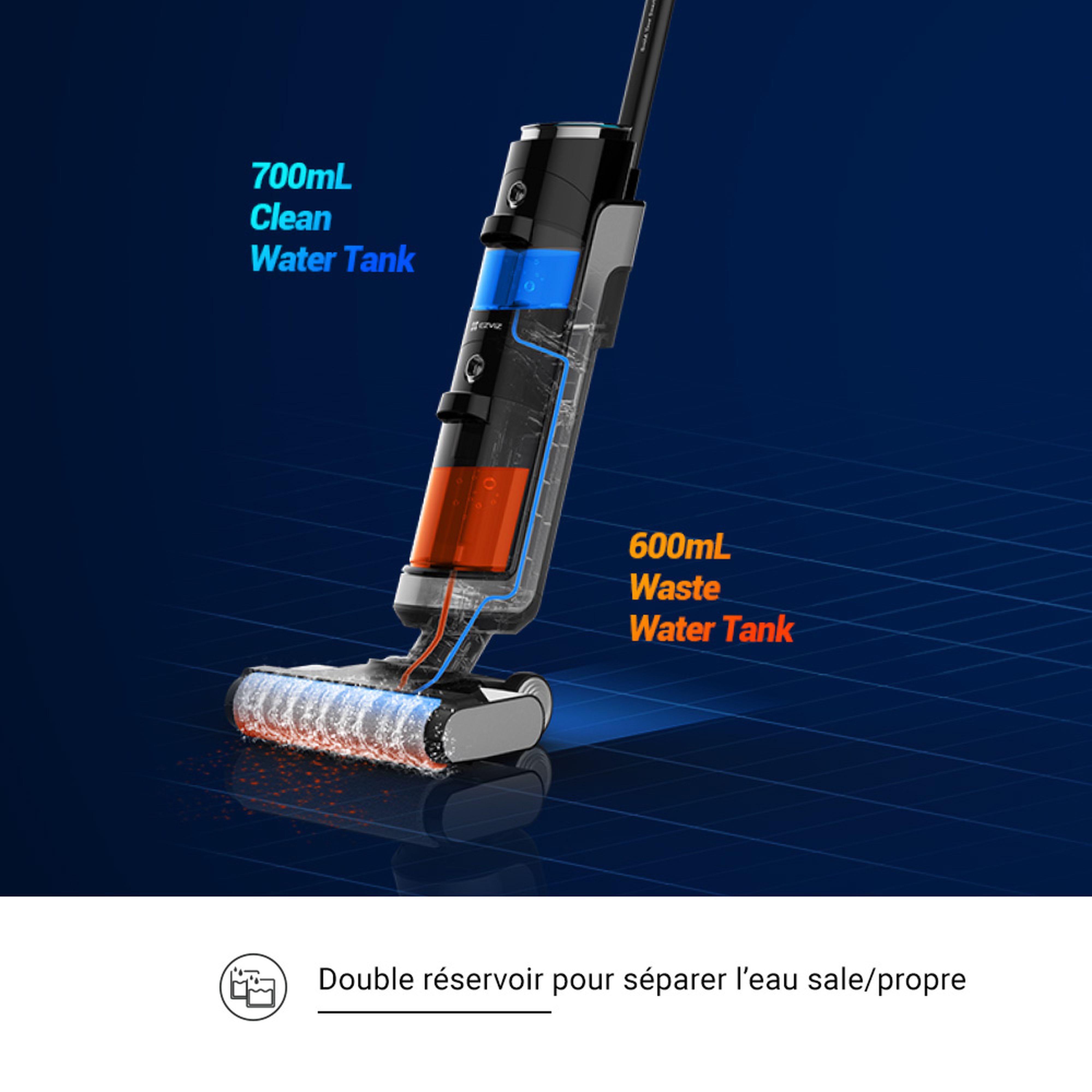 EZVIZ - Aspire,lave et sèche/Contrôle intelligent de l'aspiration/Puissance de 12000Pa - RH1