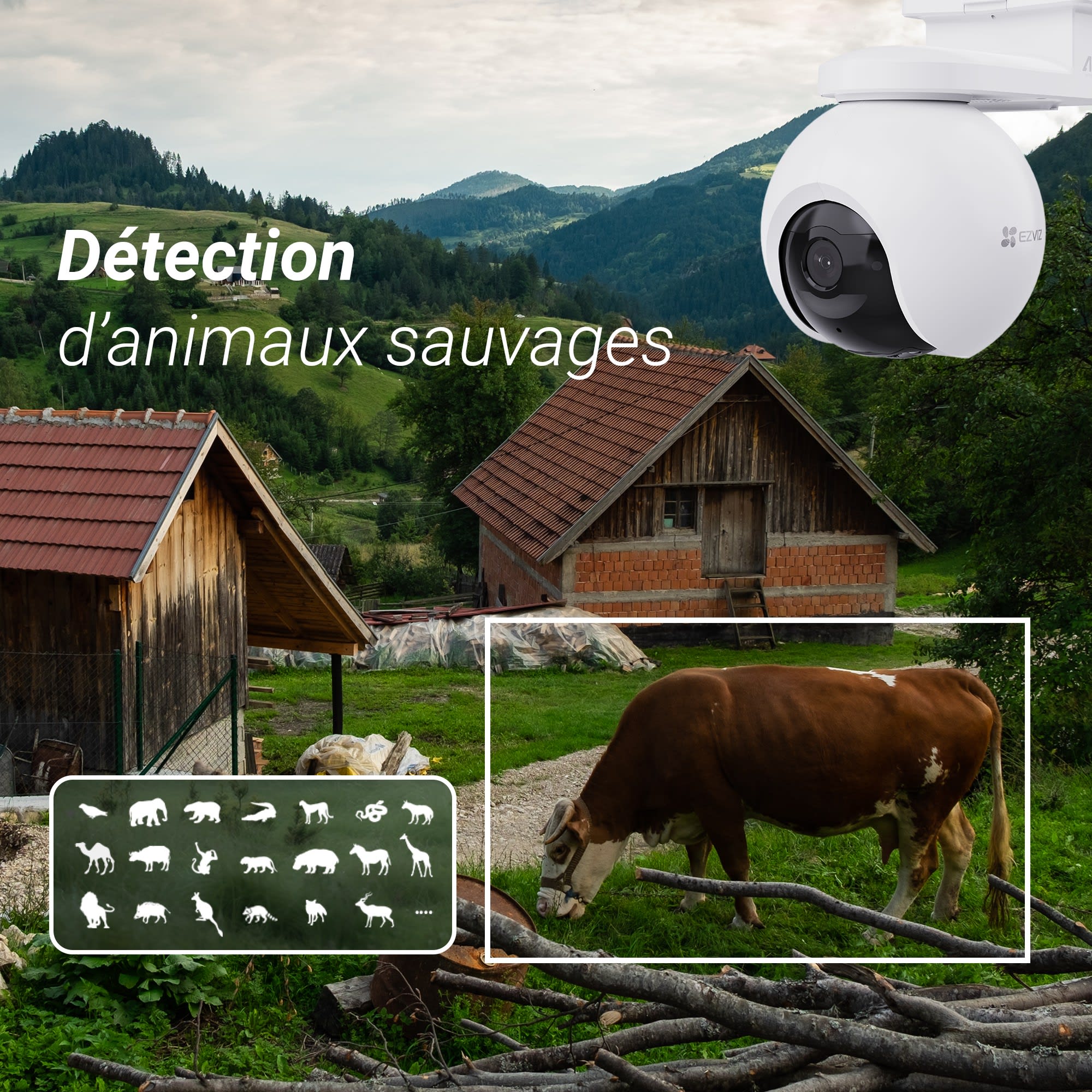 4K/Double connectivité 4G & Wi-Fi6/Détection de la forme humaine&véhicule/Détection d’animaux sauvages/Auto-suivi/Exposition d’image équilibrée/Conversation bidirectionnelle/Défense active sirène&flash/MicroSD jusqu’à 512Go