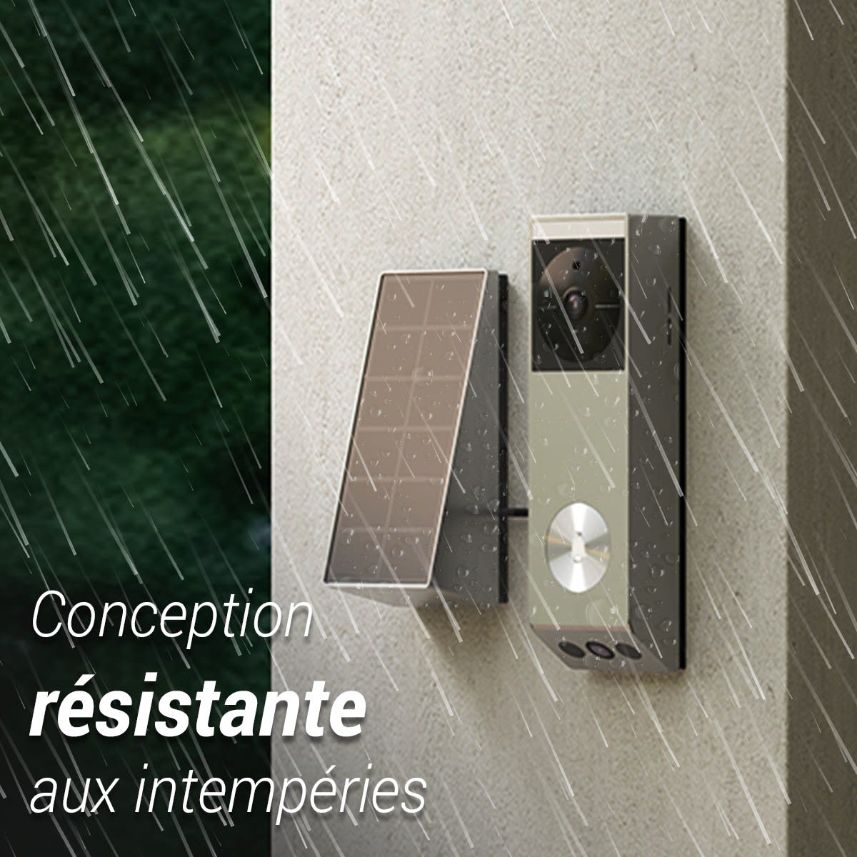 Sonnette vidéo à double objectif 3MP+2MP/Mémoire 32Go intégré/Détection des mouvements humains/Alarme anti-sabotage/Détection de colis/Vision nocturne en couleur/Conversation bidirectionnelle/Changement de voix/Panneau solaire inclus