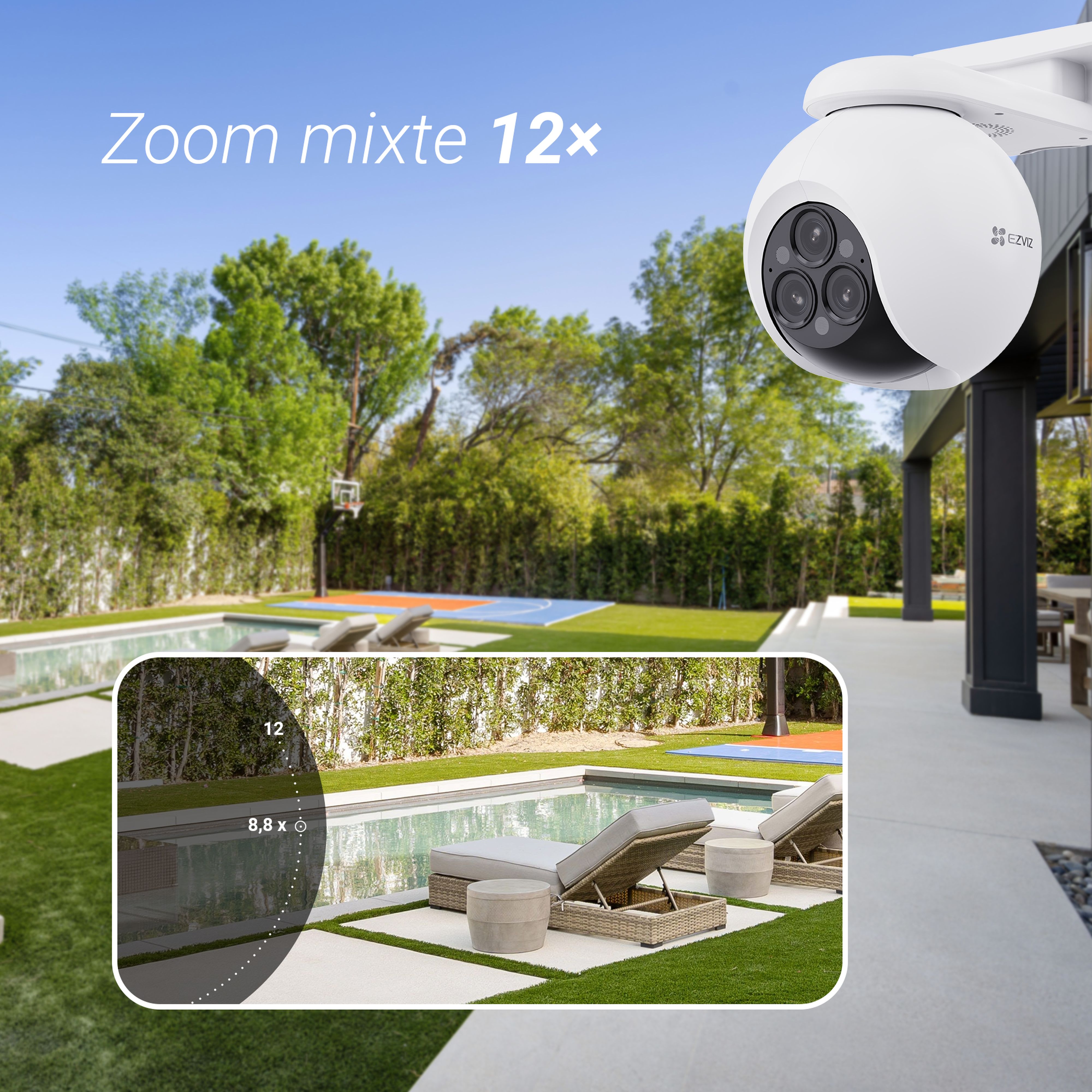 EZVIZ - H80f - Caméra Wi-Fi à triple objectif 2K+(4MP)/Zoom optique 12x - H80F