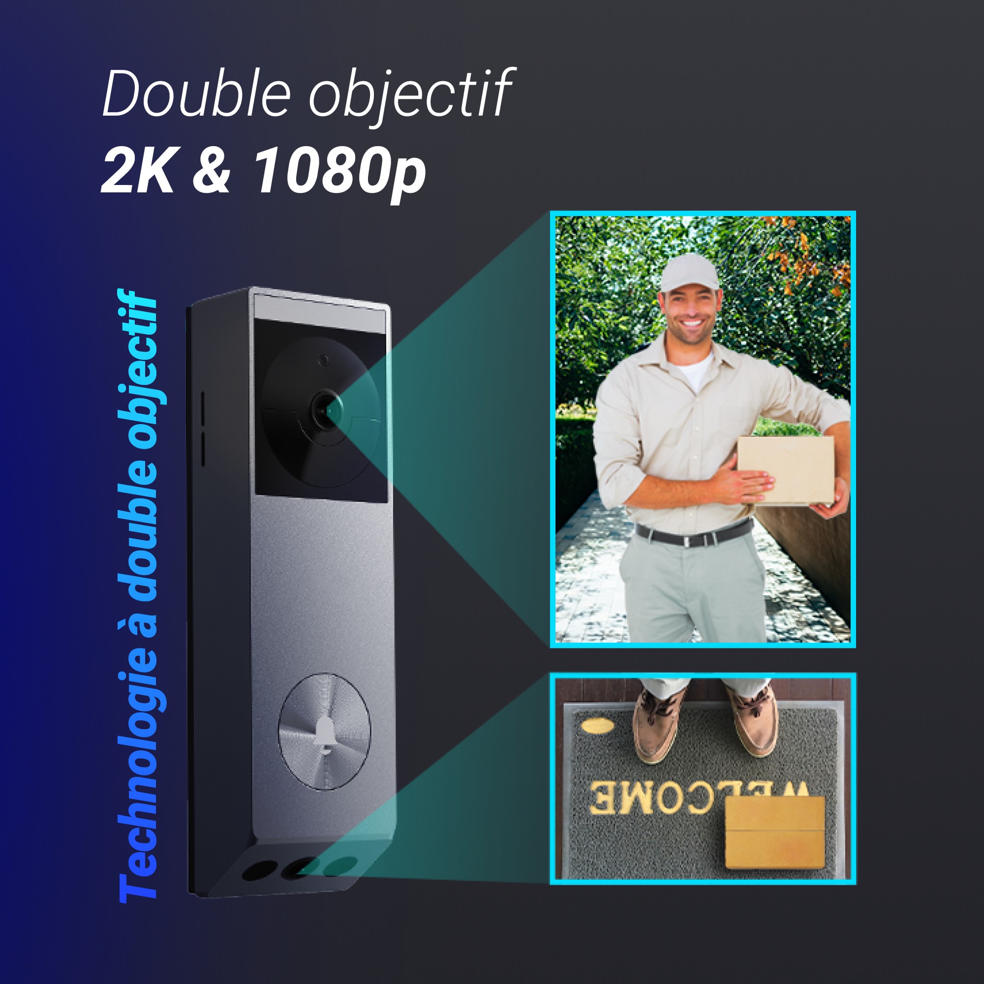 Entendez ce qui compte avec la double protection à la porteLa sécurité de votre porte d’entrée est maintenant à la fois visible et audible avec le puissant kit EP3x Pro et CH1. Avec le carillon inclus, vous pourrez entendre clairement chaque fois que quelqu’un s’approche de votre porte. La sonnette vidéo intelligente améliore la sécurité de votre maison avec une caméra principale 2K en haut et une caméra inférieure supplémentaire, vous permettant de surveiller une zone plus grande. Vous pouvez détecter les visiteurs et suivre vos colis grâce au stockage eMMC intégré gratuit de 32 Go. Le panneau solaire inclus garantit que votre gardien intelligent fonctionne en continu avec une énergie verte non-stop.