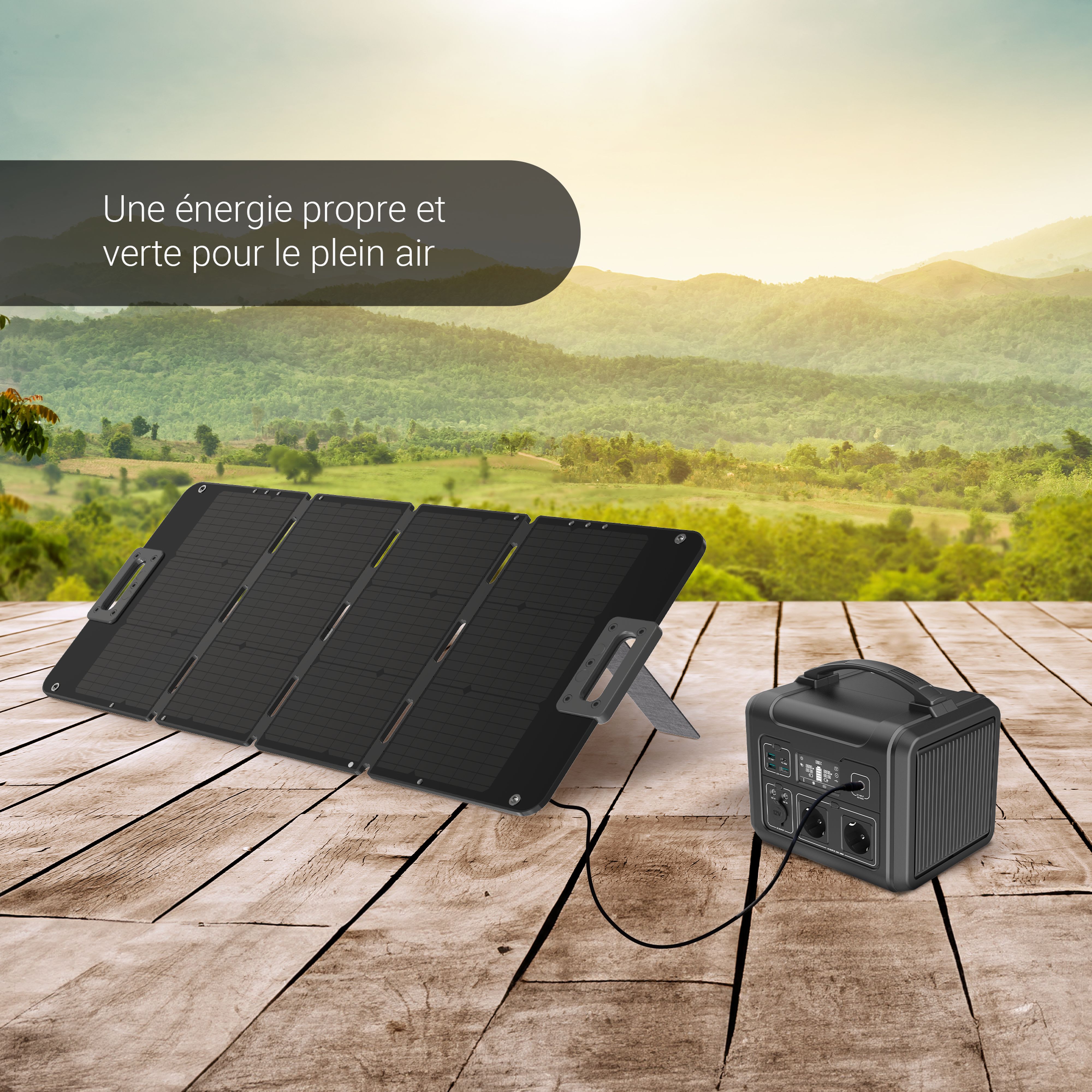 Panneau solaire portable et pliable 100W pour PS300 et PS600: temps de charge moyen estimé pour PS300 8 à 16 heures, pour PS600 8 à 16 heures