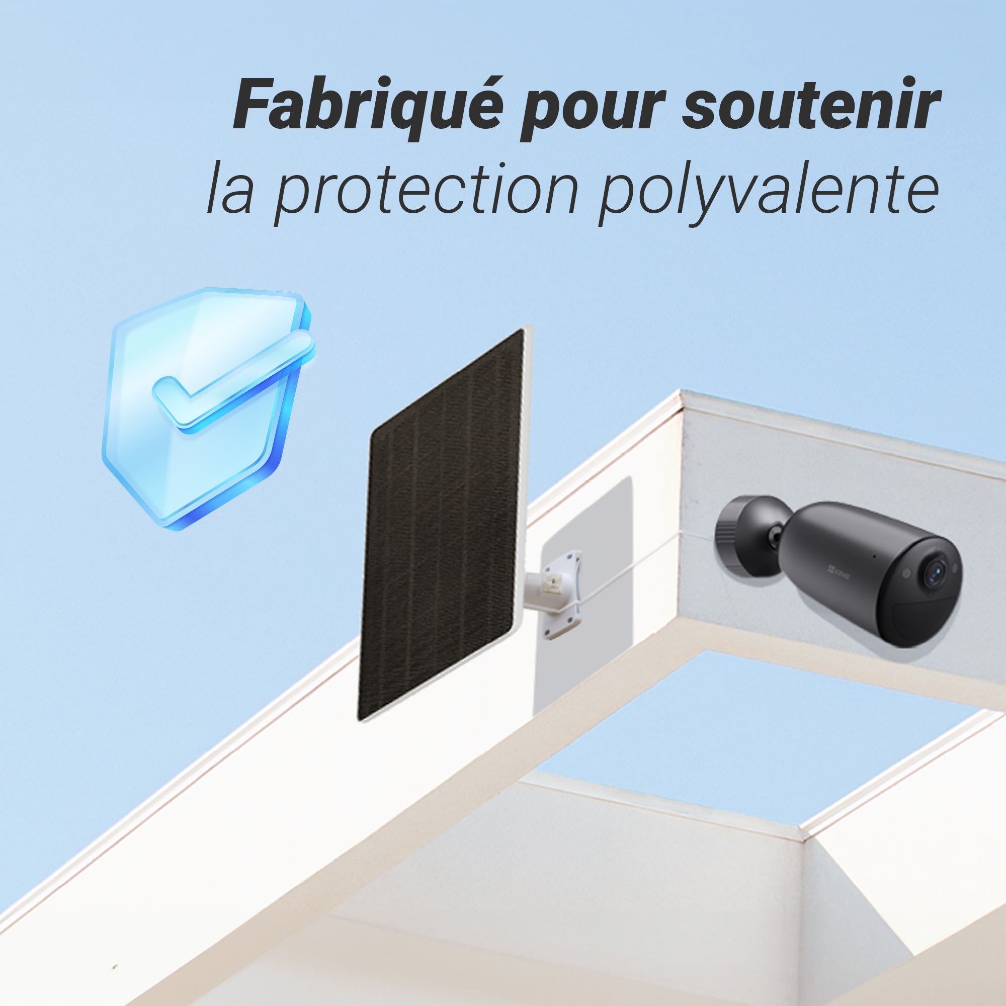 Panneau solaire 5W conçu pour recharger toutes les caméras extérieures sur batterie EZVIZ (port Type-C). Avec seulement 18 minutes d’ensoleillement, profitez d’une autonomie pour toute la journée.