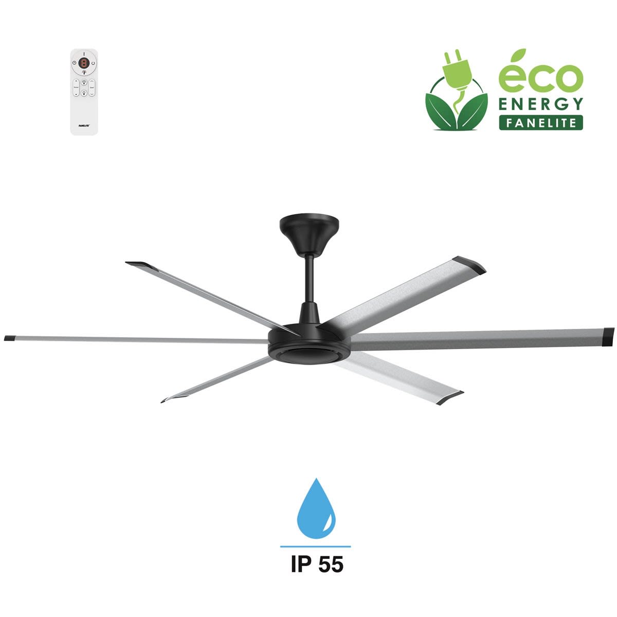 Fanelite - Ventilateur plafond DC 254 cm - Gris/Noir - 6 pales - Télécommande - IP55 - TIGA