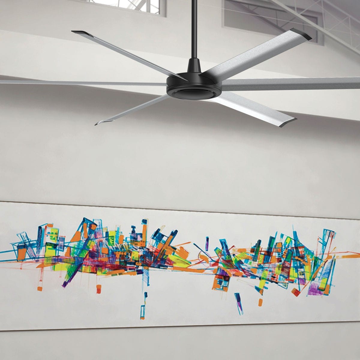 Ventilateur de plafond DC courant continu - 254 cm - Professionnel - IP55 usage intérieur/extérieur - Puissant - Gris/Noir - 6 pales alu - Moteur 203W - Télécommande - 6 vitesses - Mode été/hiver - Fonction mémoire - Minuterie