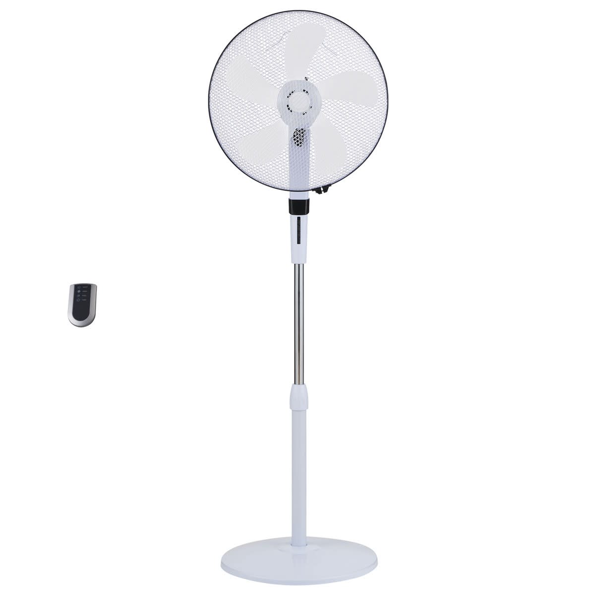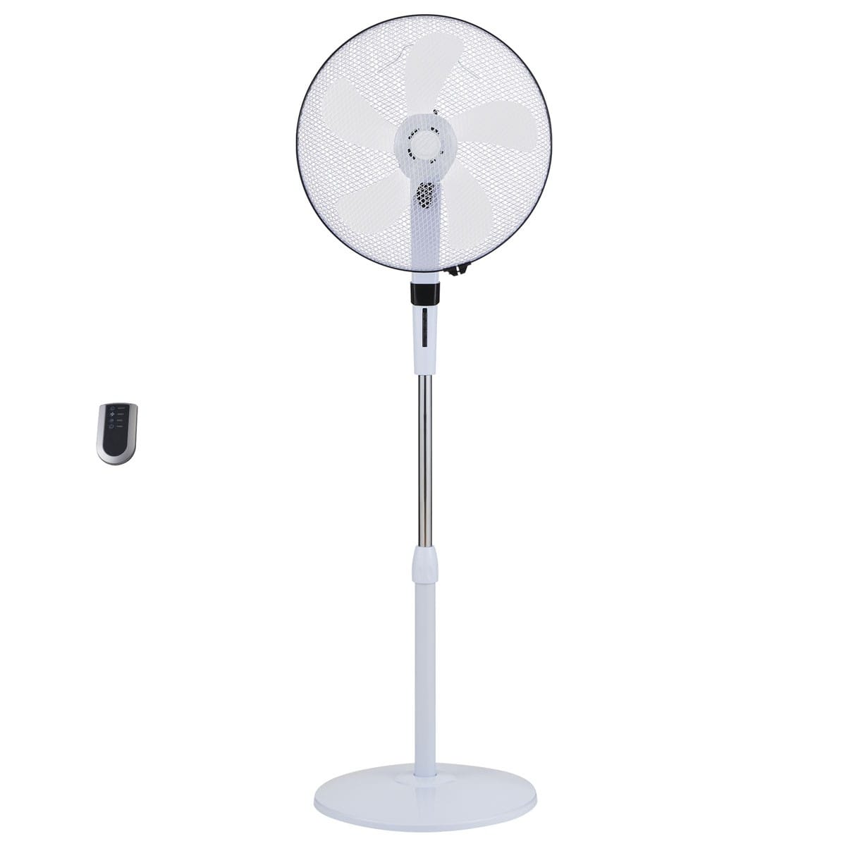 Ventilateur sur pied - 40 cm - Blanc - Télécommande et panneau de contrôle - 3 vitesses - Oscillant ou fixe - Angle d'inclinaison réglable - Hauteur ajustable - Silencieux - Minuterie