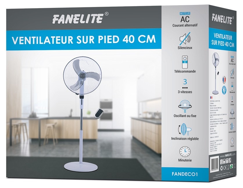 Fanelite - Ventilateur sur pied 40 cm - Blanc - Télécommande - FANDECO1