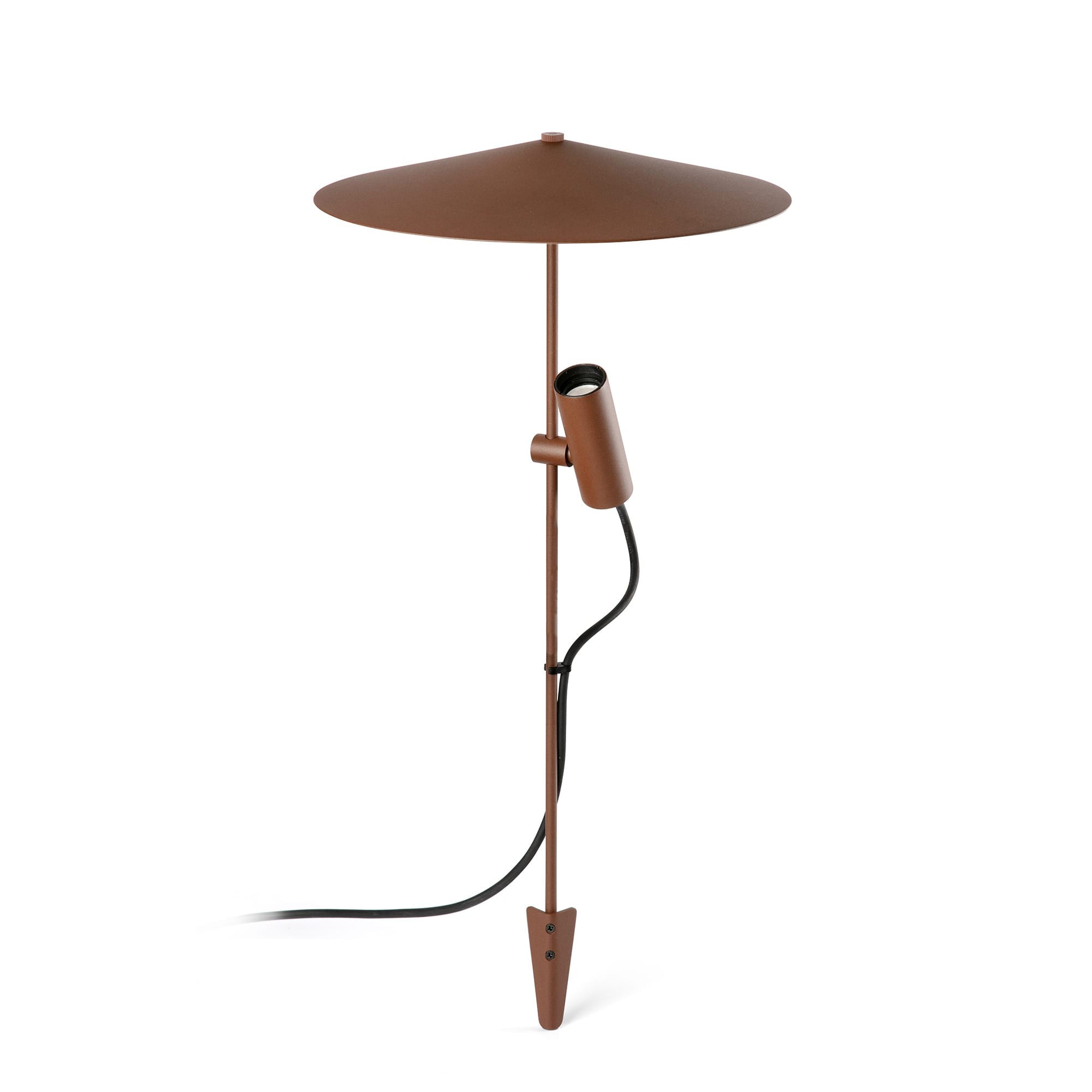 CLAP 630 avec plaque S est un piquet extérieur marron rouille LED 6W 3000K 38°. La plaque apporte stabilité. Fonctionne en 24V.