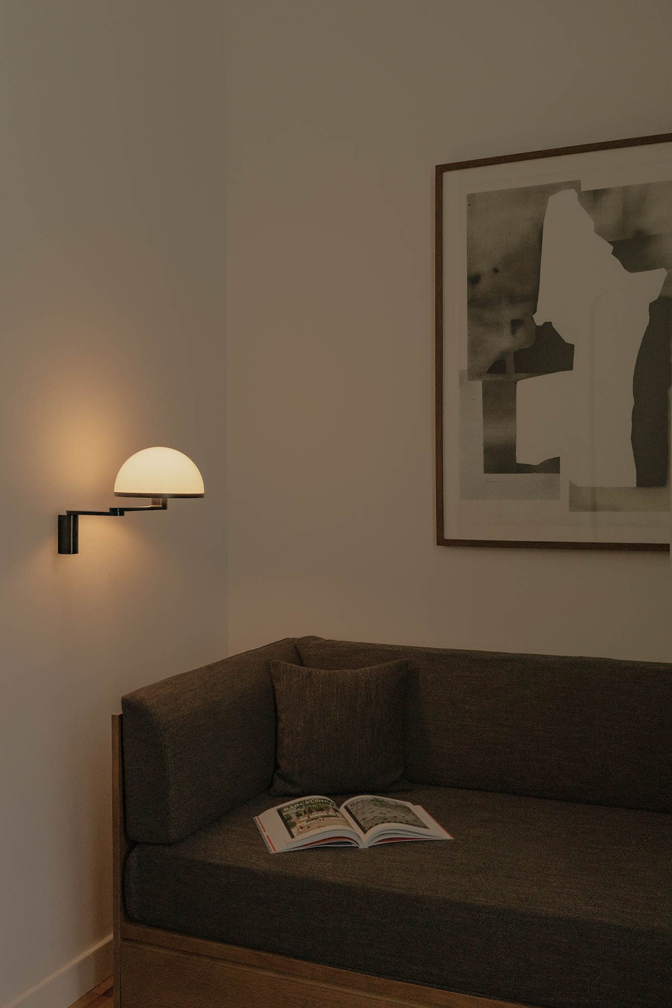 DOME applique murale noire avec bras orientable conçue par Faro Lab, qui réinterprète les classiques avec une approche minimaliste, utilisant des formes simples et épurées. Destinée à créer une atmosphère chaleureuse et accueillante dans de