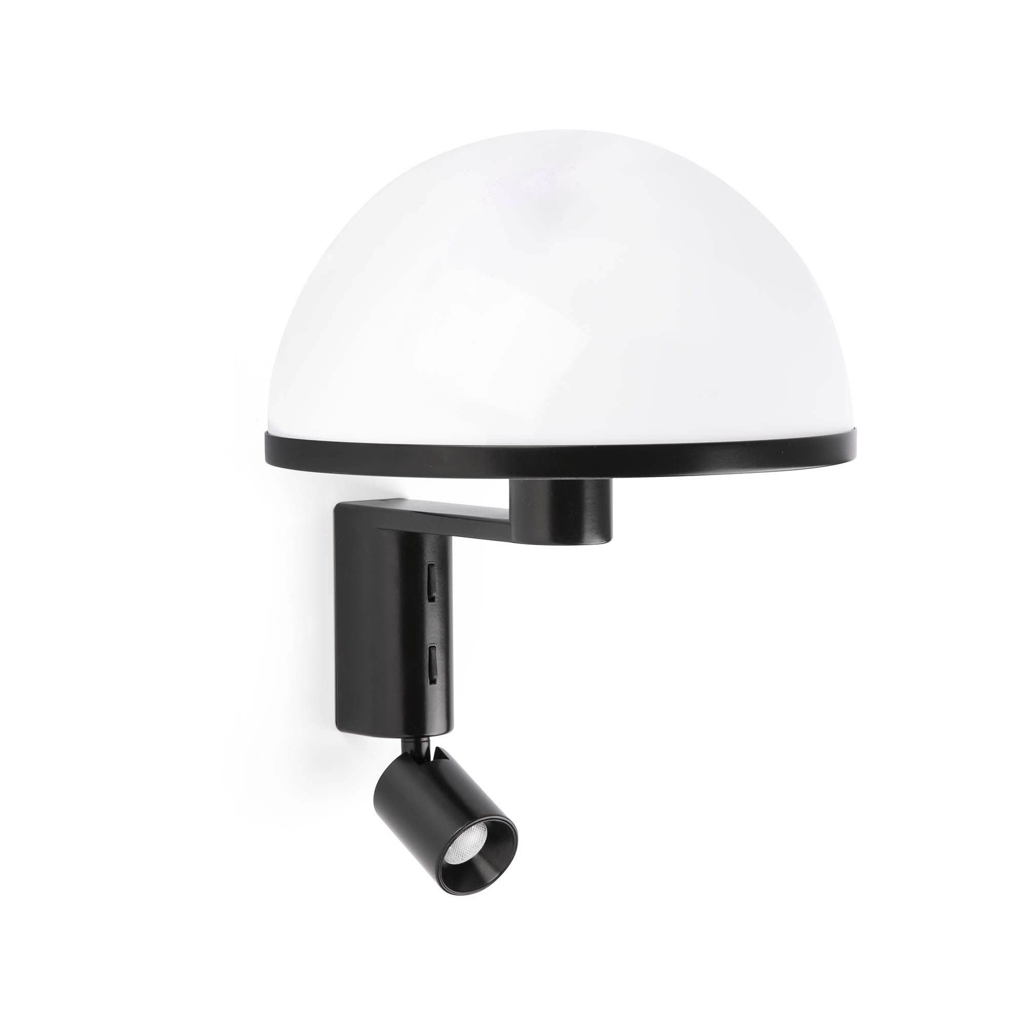 DOME applique murale noire avec liseuse LED conçue par Faro Lab, qui réinterprète les classiques avec une approche minimaliste, utilisant des formes simples et épurées. Destinée à créer une atmosphère chaleureuse et accueillante dans des en