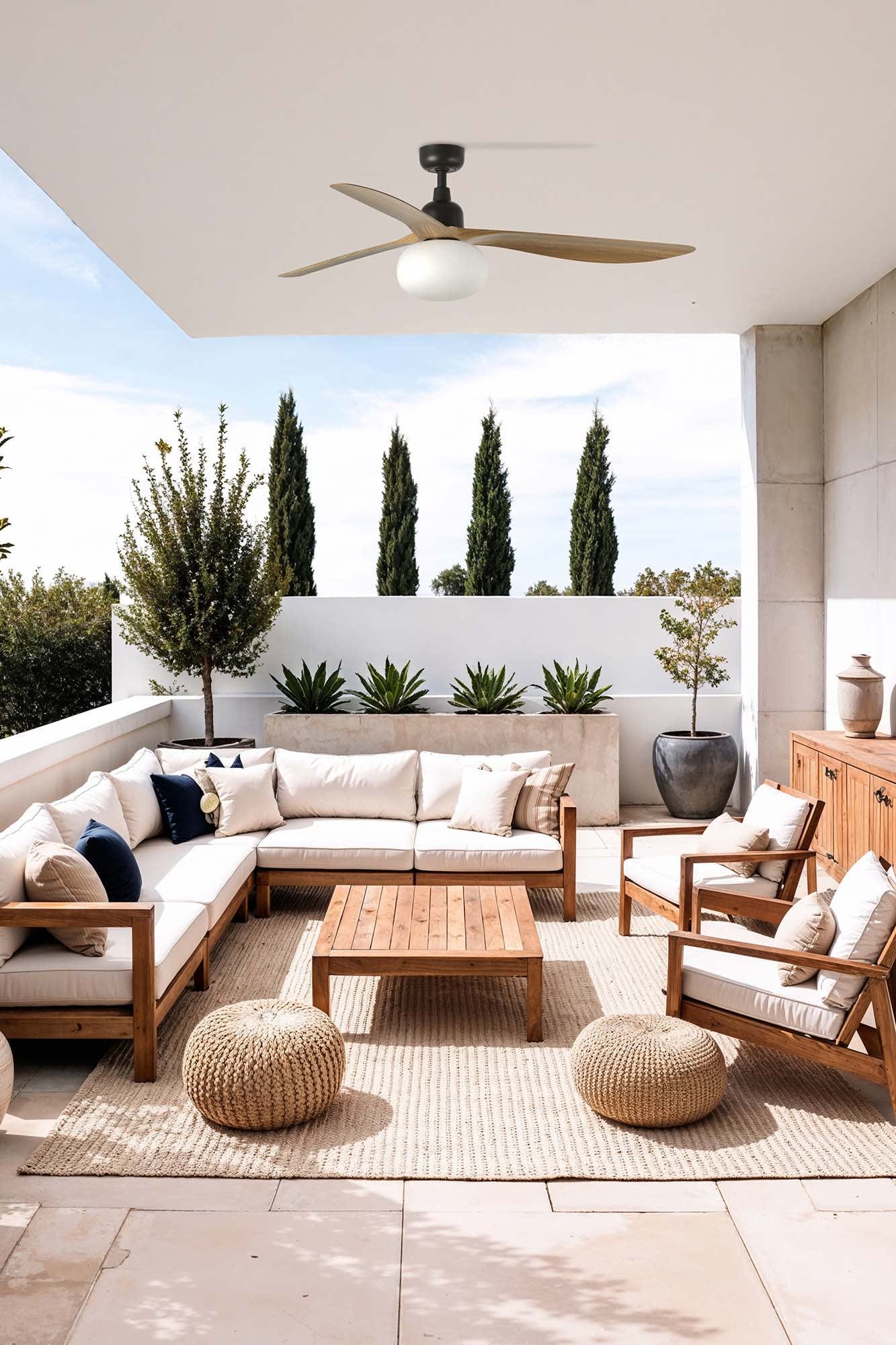 Outwood est un ventilateur de plafond en surface avec finition des pales chêne, avec taille L. Équipé d’un moteur DC, il propose 6 vitesses réglables, dispose d’une fonction inverse et est adapté aux plafonds inclinés.