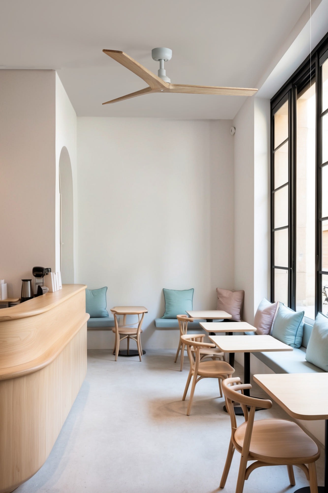 KLIM M est un ventilateur de plafond conçu par Faro Lab. Avec ses pales stylisées, élégantes et ultra compactes, cette version blanche dispose de 3 pales en pin certifié FSC. Intégrant un système TUYA, il allie design, efficacité et technologie pour un confort optimal.