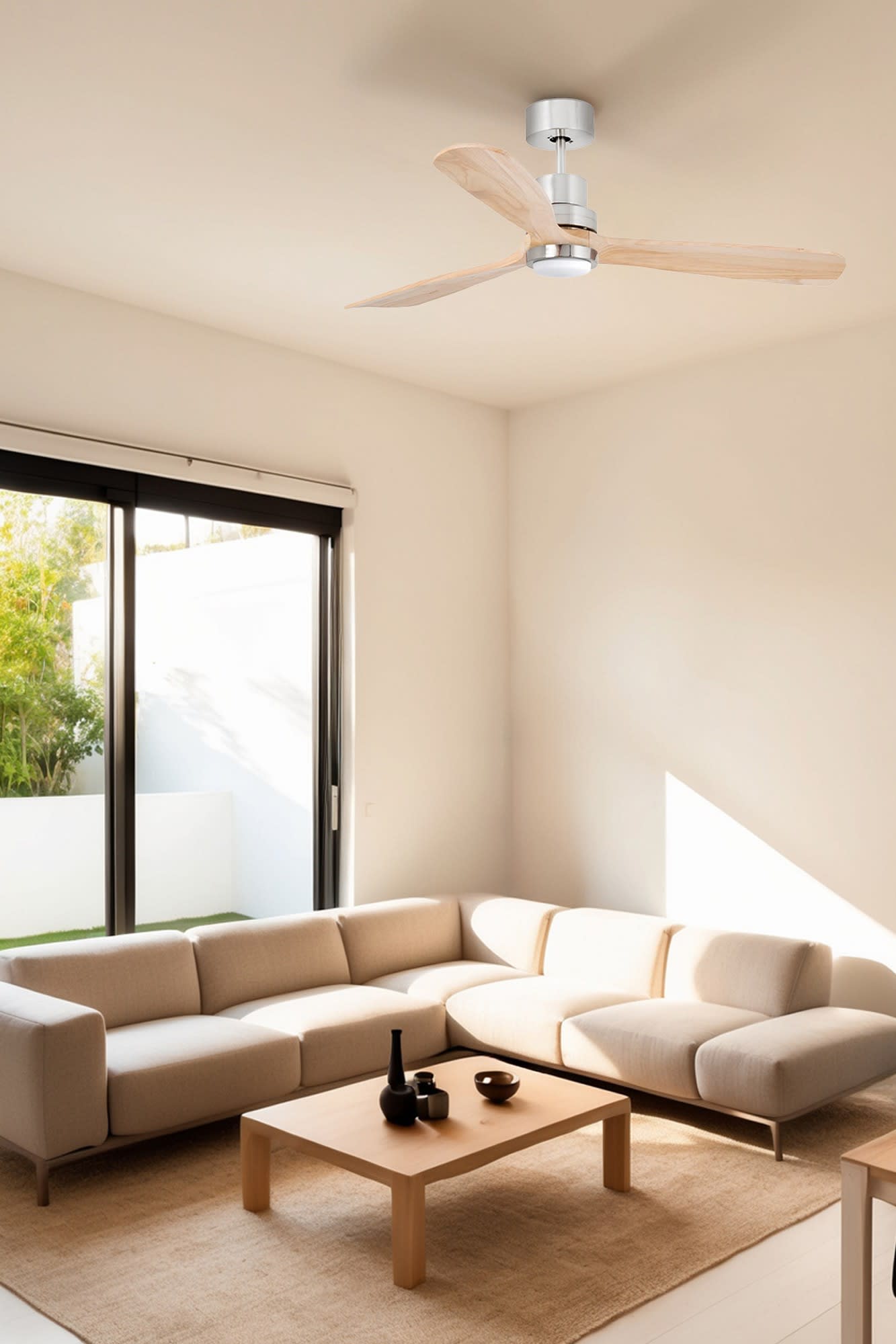 Découvrez le ventilateur de plafond LANTAU L au design moderne avec pales arrondies et version nickel mat à 3 pales en pin. Équipé d’un kit d’éclairage 15W et intégré du système Smart Tuya pour une gestion intelligente. Un choix élégant et pratique.