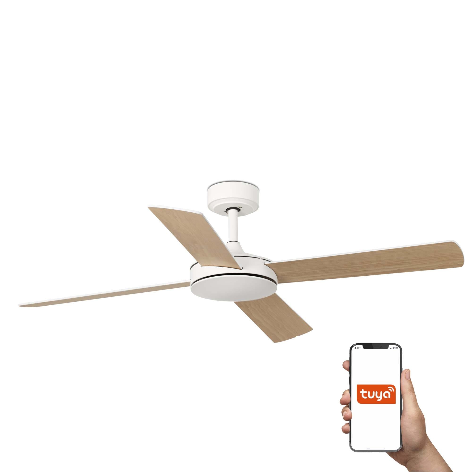 Faro - Ventilateur de plafond MALLORCA L, 4 pales réversibles, blanc/érable, TUYA - 33350DCWT