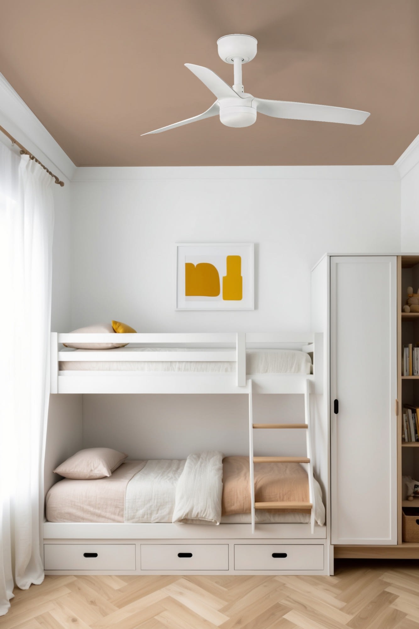 MINI PUNT S est un ventilateur de plafond au design moderne et minimaliste, en version blanche avec 3 pales blanches. Il intègre un kit d’éclairage LED 10W et un système Smart Tuya pour une gestion intelligente et connectée.