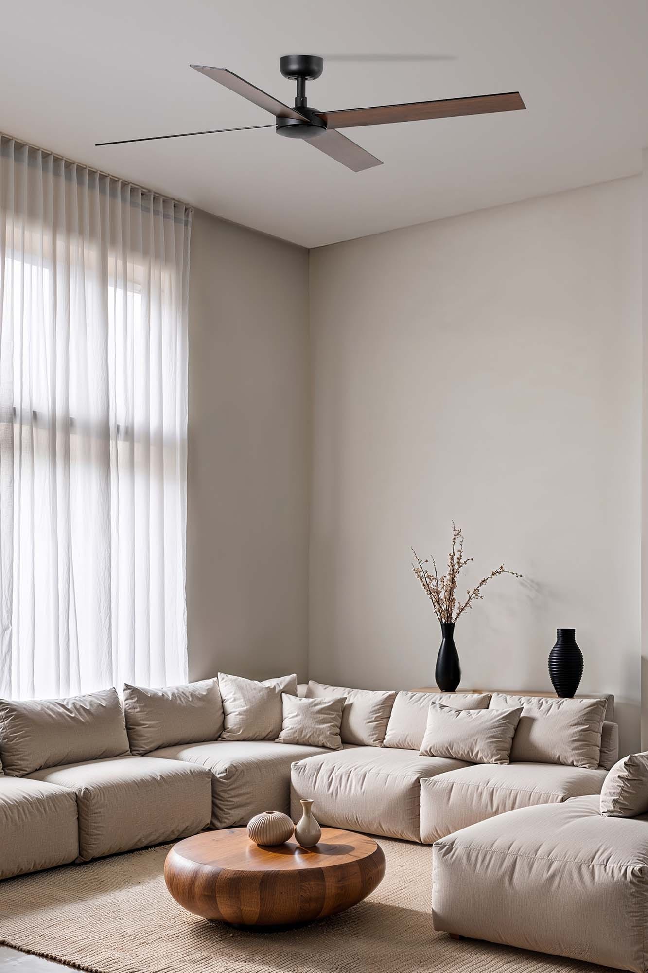 Le ventilateur RUDDER L est un modèle contemporain en noir doté de 4 pales en noyer. Son design épuré s’intègre parfaitement dans tout intérieur moderne. Équipé du système Smart Tuya, il offre une gestion intelligente et connectée pour un confort optimal.