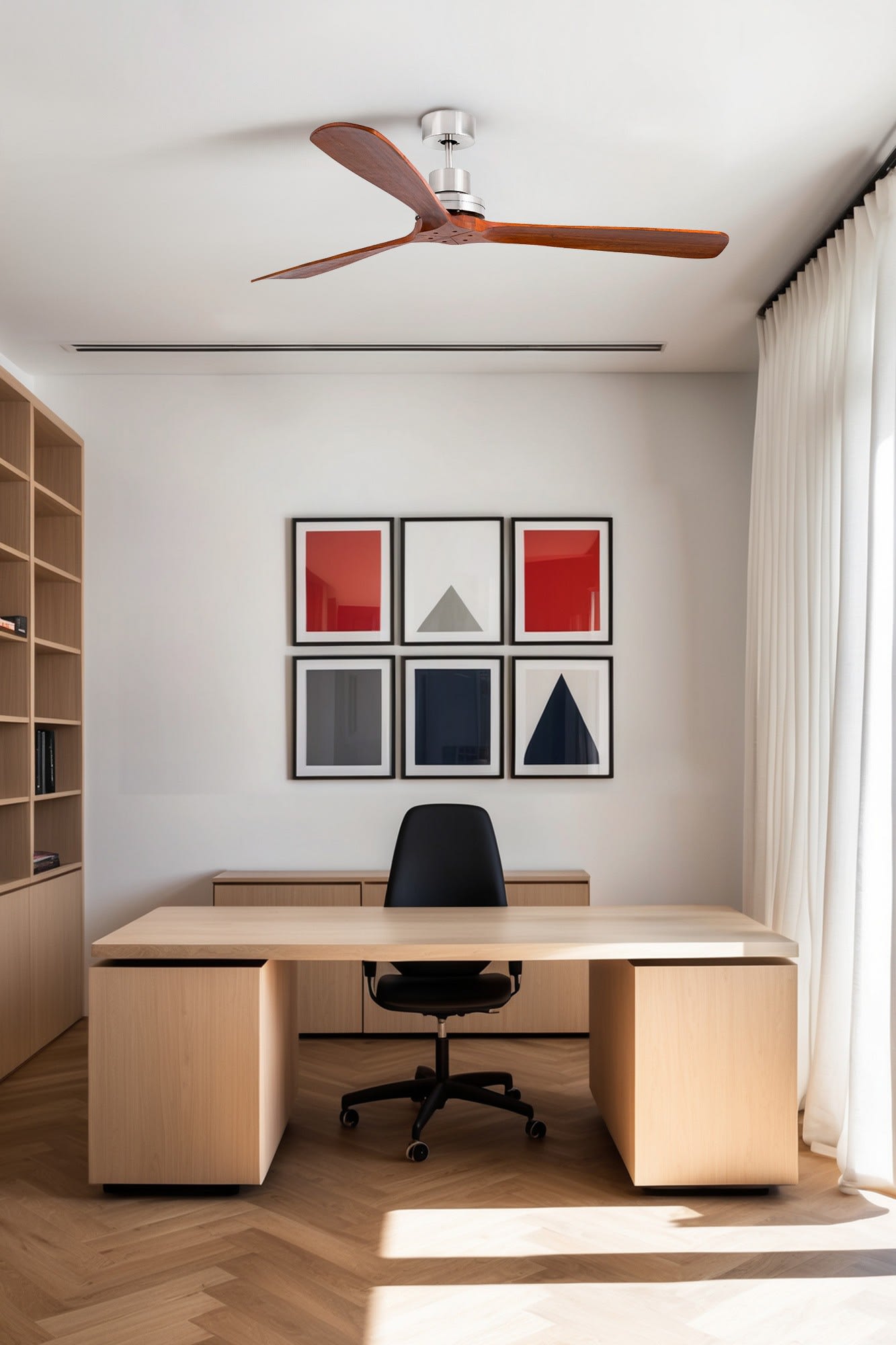 LANTAU est un ventilateur de plafond moderne au design innovant et esthétique, doté d’un moteur en acier et de pales en bois certifiées FSC, disponible en plusieurs coloris et tailles, avec ou sans éclairage. Il est équipé d’une télécommande, possède 6 vitesses réglables et une fonction inverse pour une utilisation hivernale, améliorant ainsi l’efficacité du chauffage. Il peut être installé sur des plafonds mansardés et est compatible avec le système SMART TUYA. Son excellente performance énergétique en fait une option conforme à la norme RE2020.