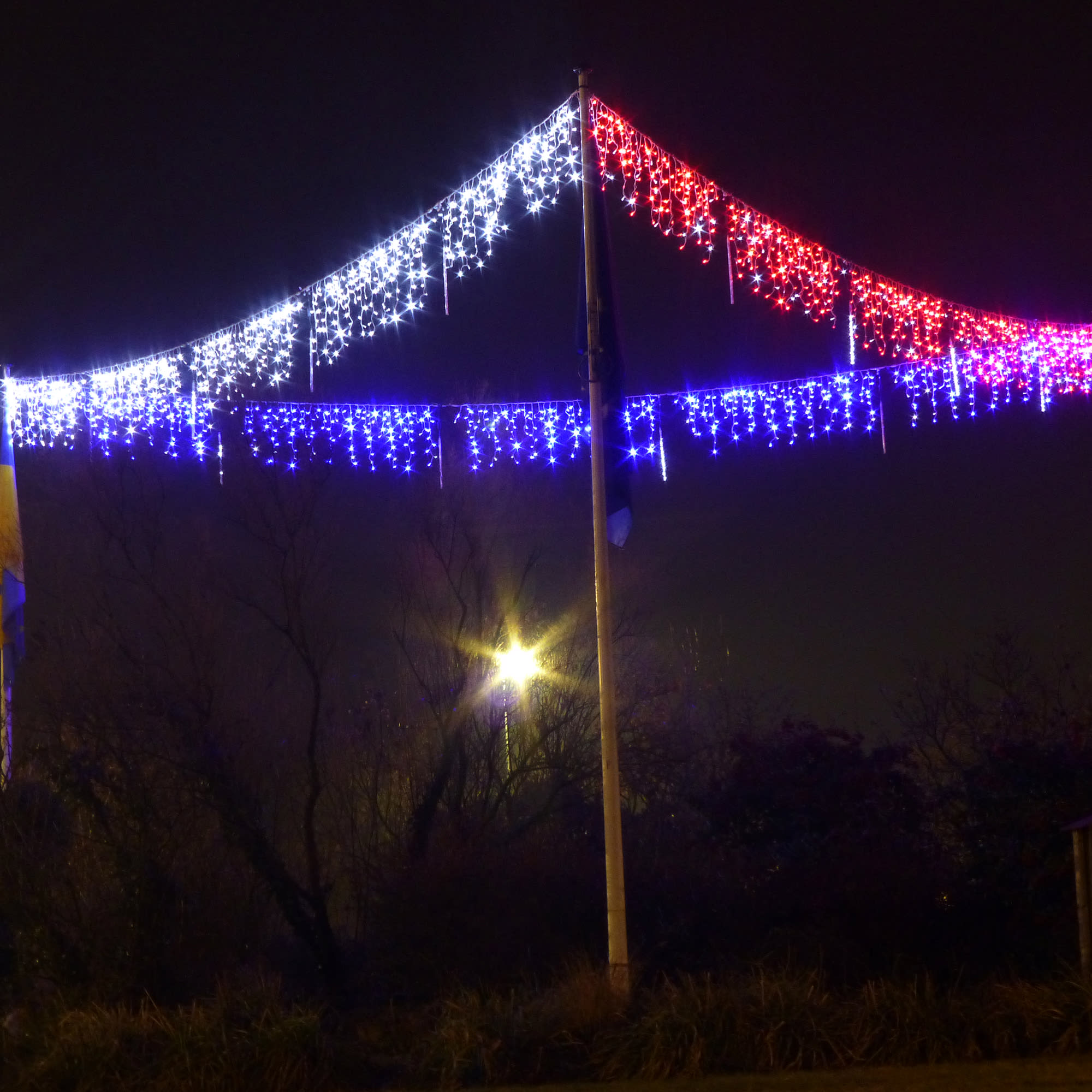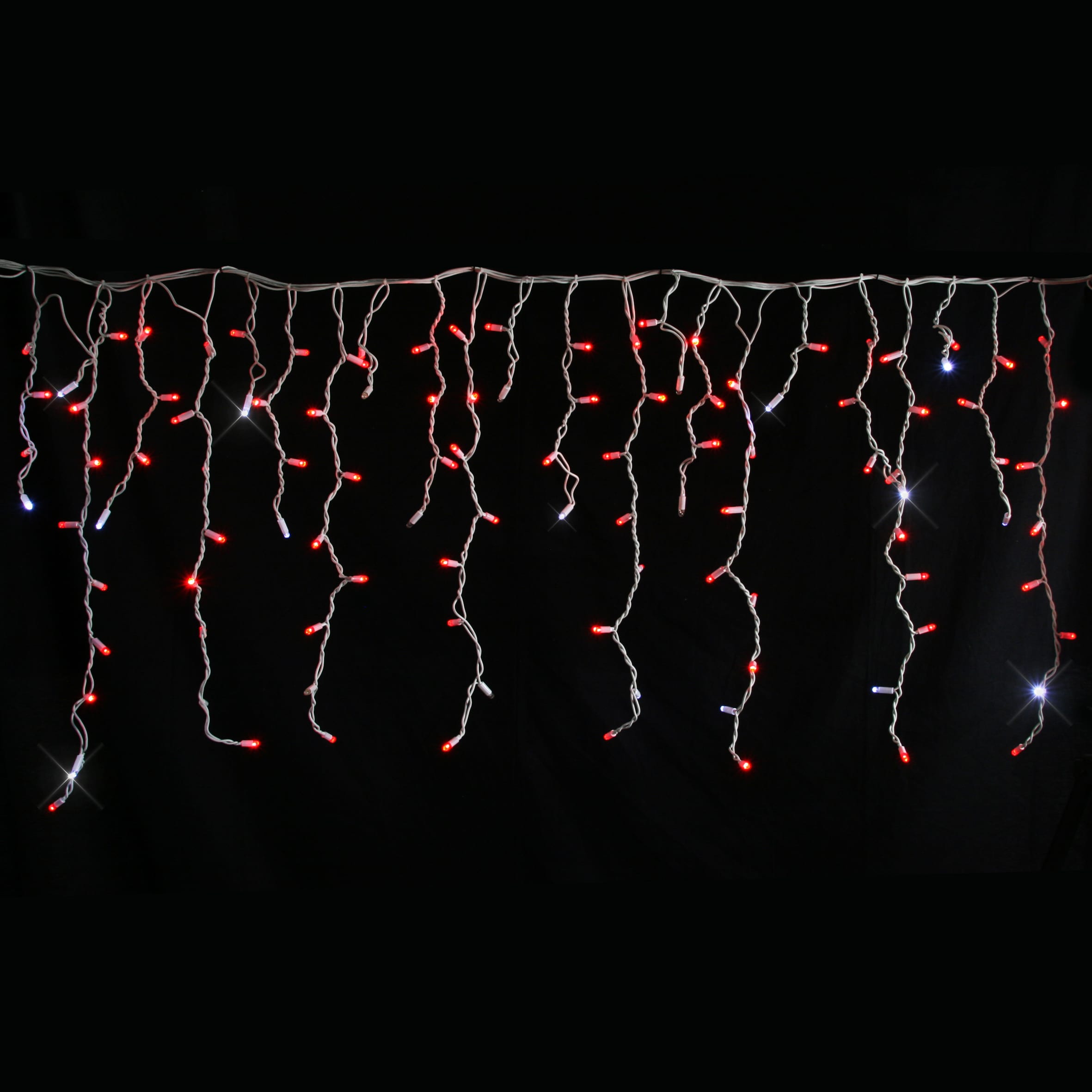 AUTHENTIC Rideau stalactite LED pétillant L4,5m x H80cm 60 descentes (20/40/80cm) 280 LED rouge|câble blanc 230V raccordable. Composé de 2 rideaux de largeur2,25m raccordés, ultra-lumineux : LED de haute qualité, Ø8mm, construction à diffusion multidirectionnelle qui assure une parfaite répartition de la lumière. Pétillement flashant élégant et raffiné