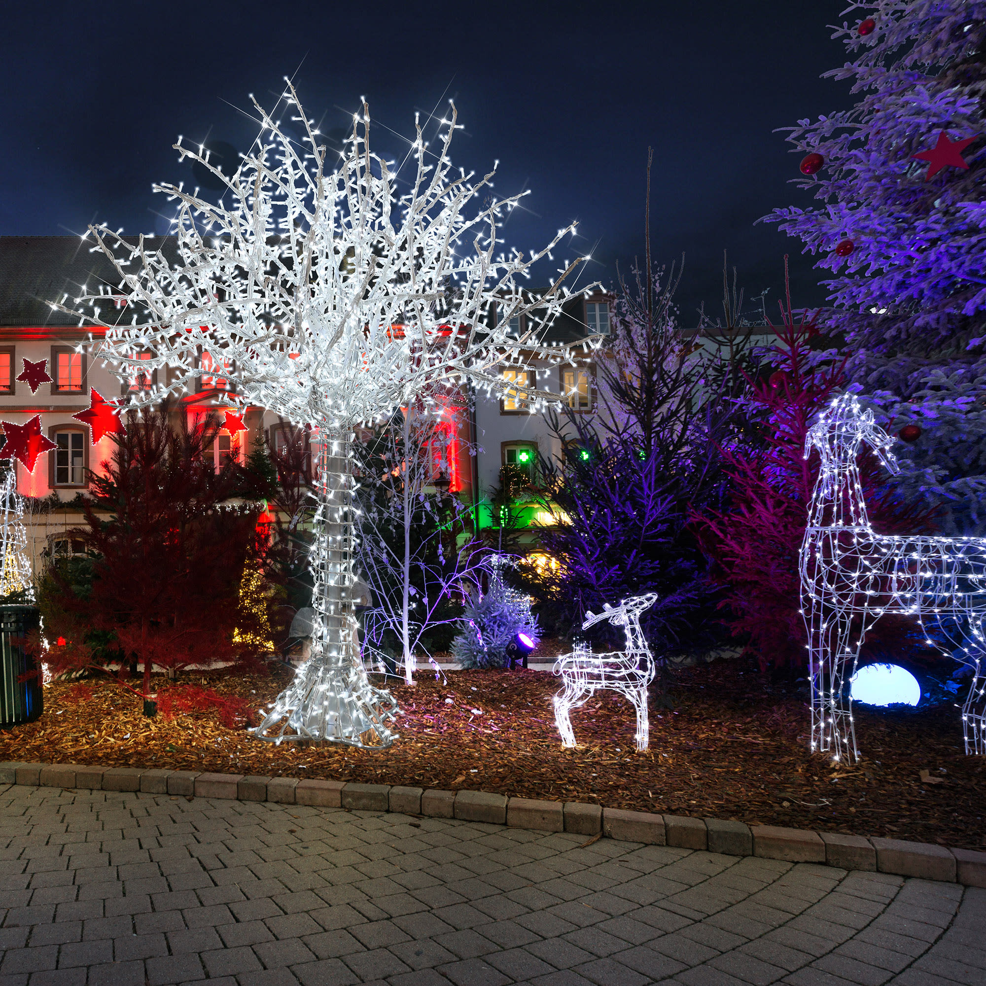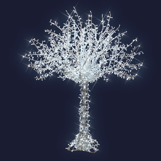 Fairy Tree - Arbre lumineux magistrale et féérique de 3,00m de haut et 2,50m de diamètre ! Il est illuminé par des guirlandes avec 3000LED blanc pétillant. 230V. Poids 40kg, il est aussi bien conçu pour l'intérieur que l'extérieur, IP44