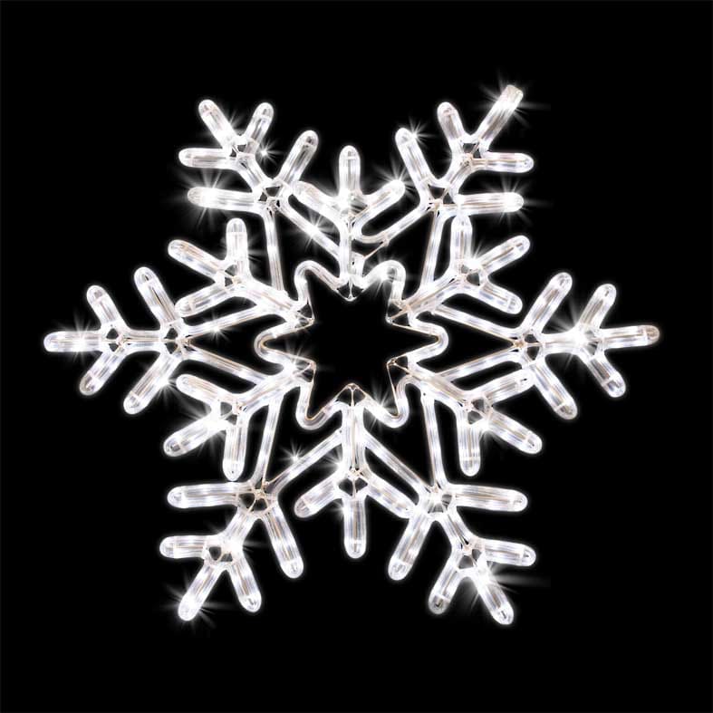 FROSTY Suspension flocon H80cm 180 LED blanc pétillant 230V raccordable. Elégant et raffiné, position horizontale des LED pour une haute luminosité visible à 360°. T de connexion fourni, Idéal dans les arbres ou en complément de décors sur des façades ou traversées de rue