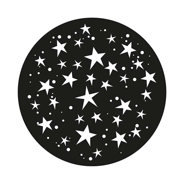 GOBO Motif Etoiles 1 couleur blanc. Taille du gobo : Ø 54 mm. A utliser avec les projecteurs de gobos suivants : GP40R1 / GP40R1IP / GP80R1 / GP80R1IP