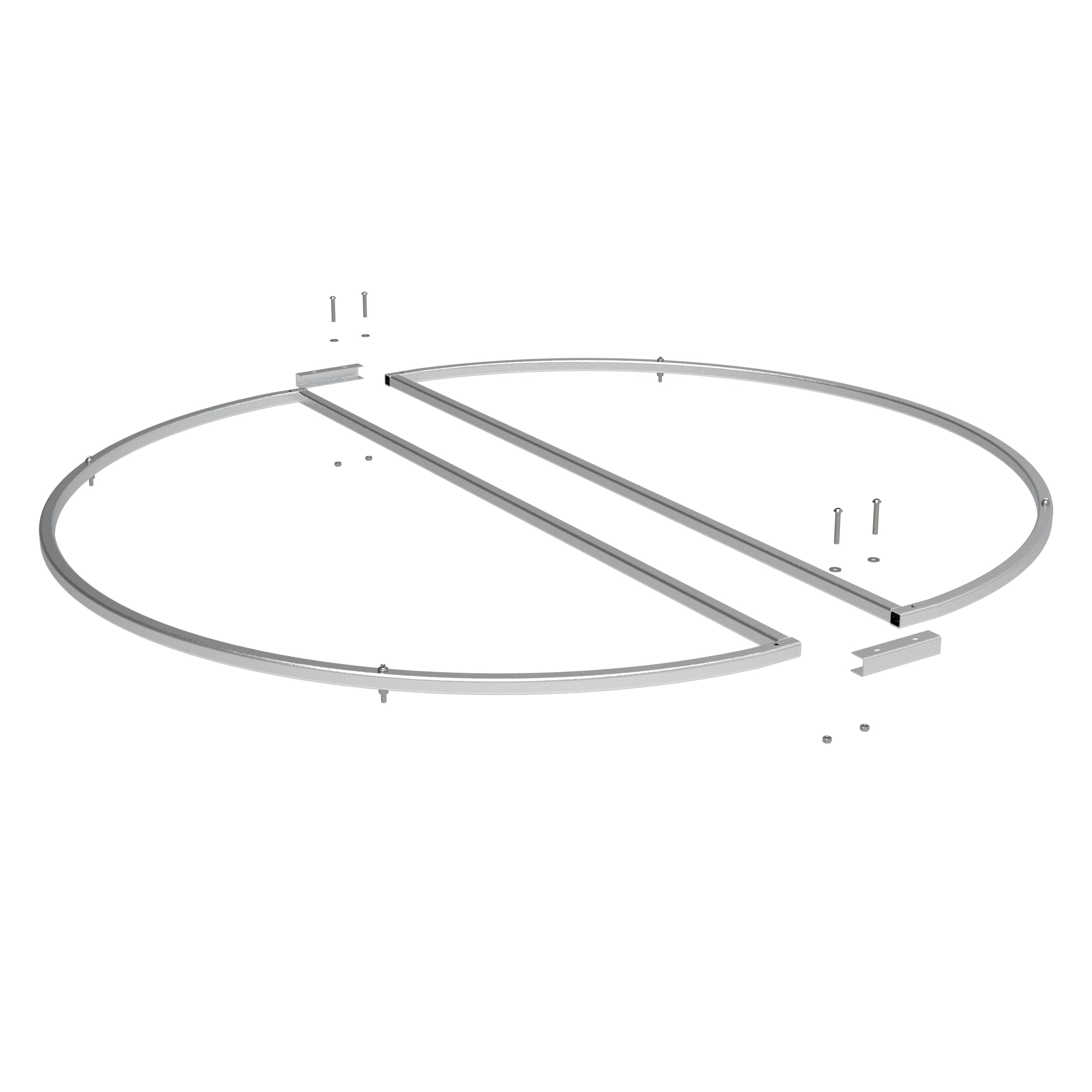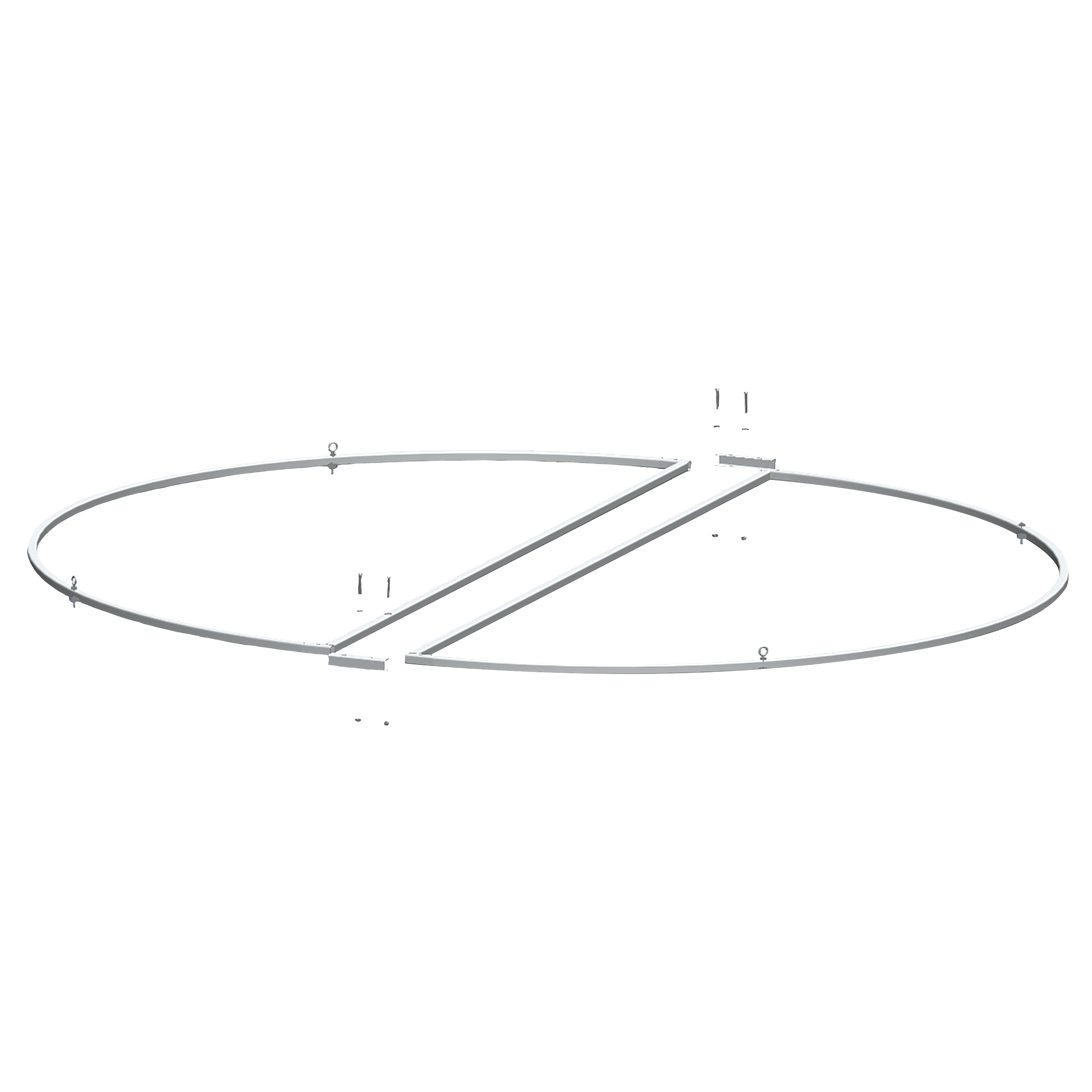 Lustre circulaire composé de 2 demi-cercles en aluminium, il est fourni sans décor lumineux - Diamètre 190cm- Usage intérieur et extérieur - Visserie fournie..