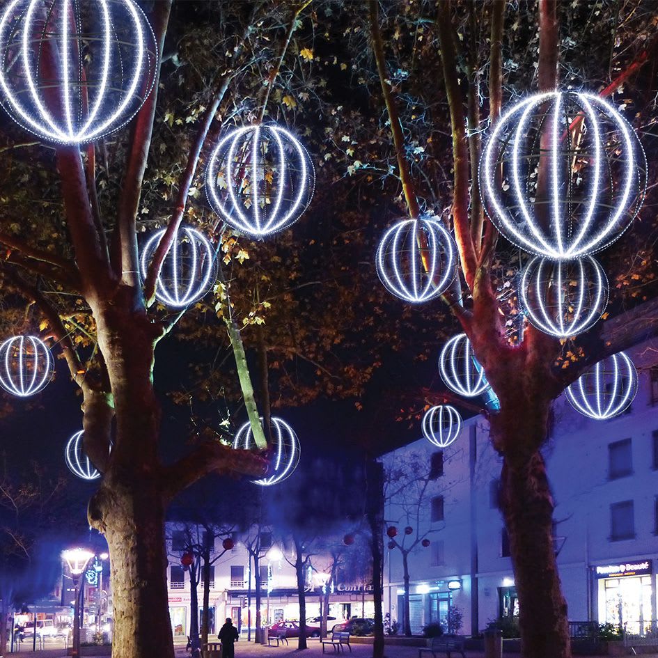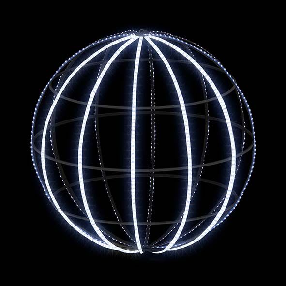 NEPTUNE Sphère STRIP LED 3D ø88cm 12 rayons 960 LED blanc Raccordable 230V. En blanc pur, une suspension exclusive : Structure métale 3D. Ultralumineuse : le STRIP LED offre une grande densité de LED SMD 2835 pour une luminosité incomparable. Connectique