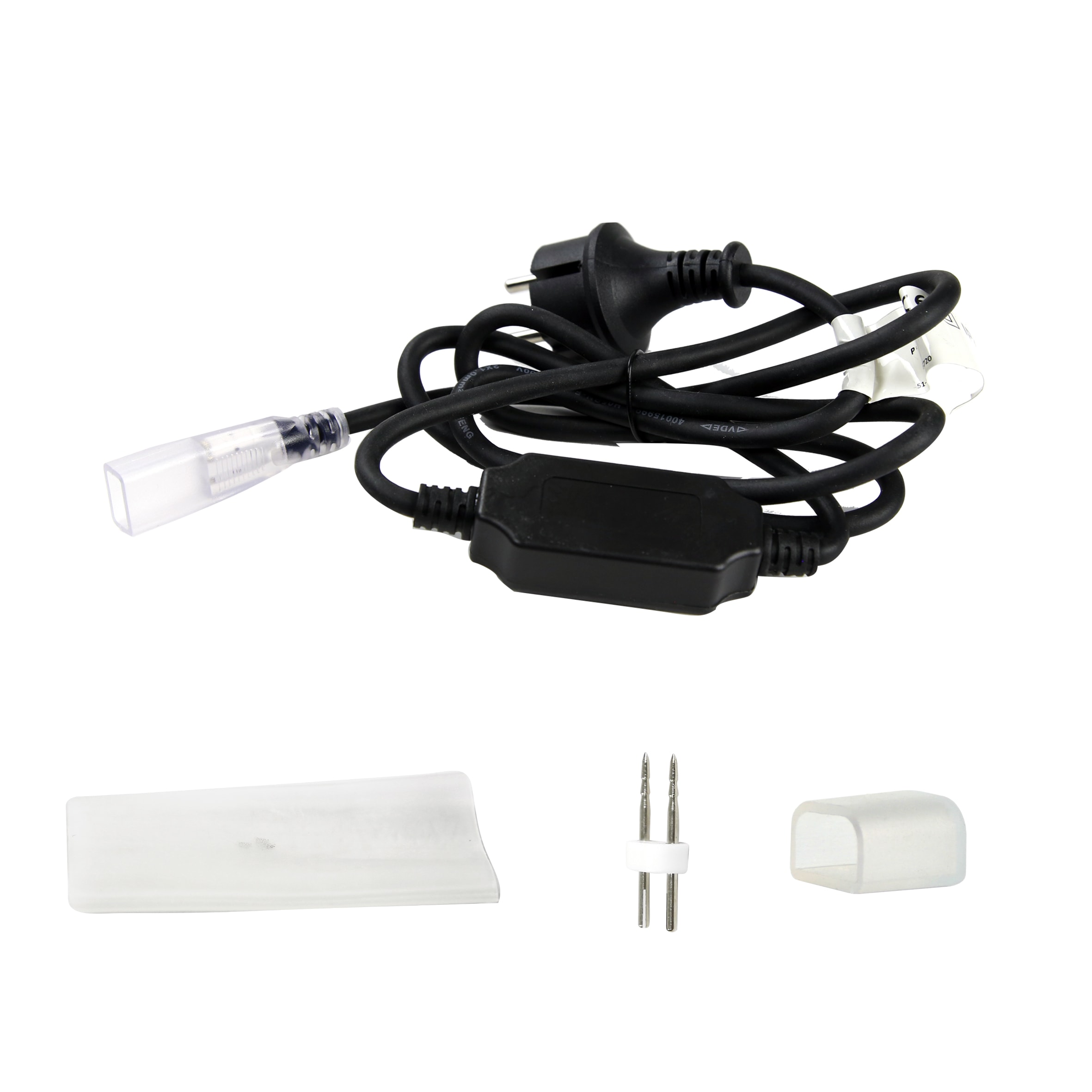 Le pack de connexion noir pour cordon néon 230V comprend 1 alimentation avec redresseur, 1 picot de connexion, 1 gaîne thermo préadhésive et 1 embout de protection. Le cordon néon n'est pas fourni. Usage intérieur et extérieur, IP44.