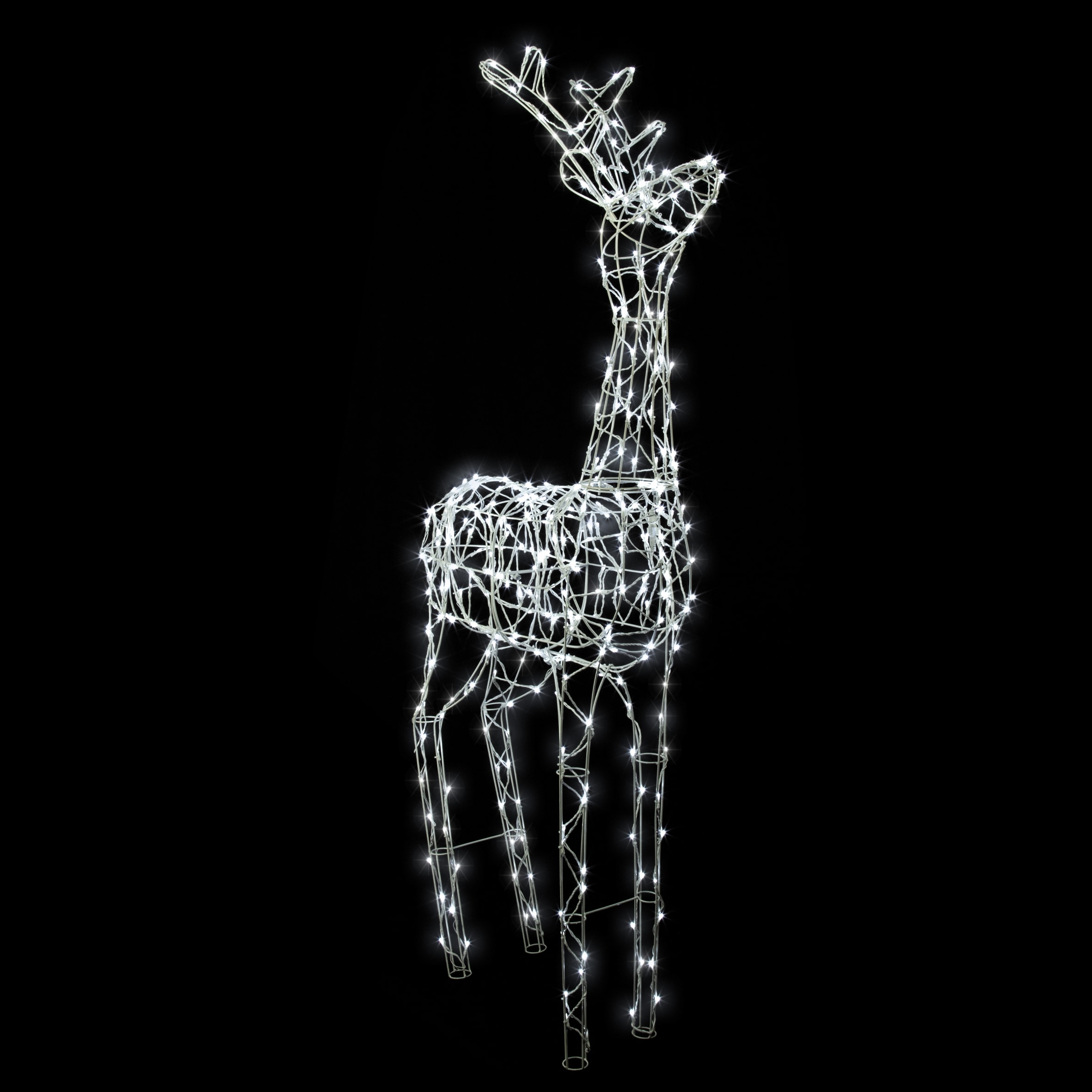 REINDEER Renne H1,80m Structure métal blanche 360 LED blanc Très basse tension. Beau volume 3Dpour un coût minimum. A lester ou fixer au sol (lest non fourni ; câble defixation fourni)